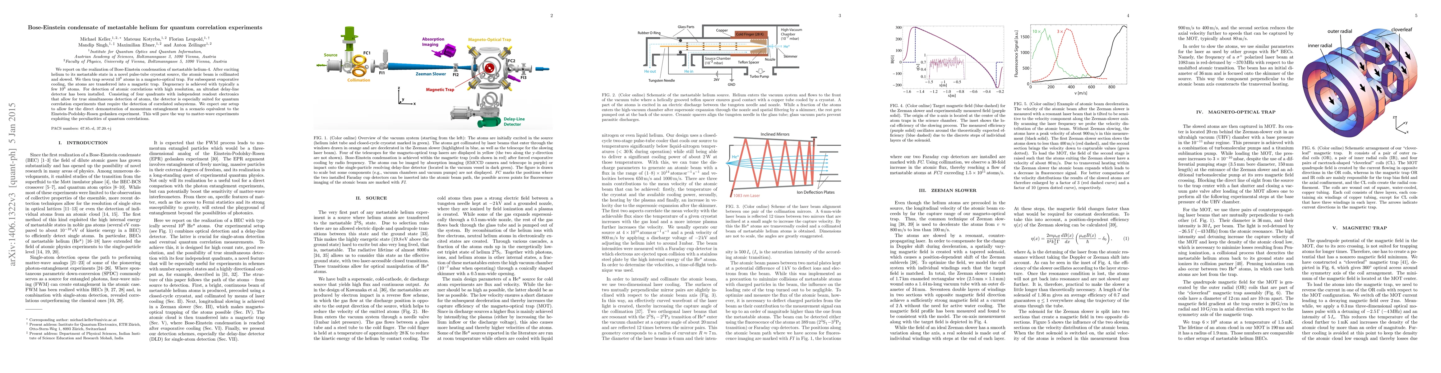Researchers have successfully condensed metastable helium-4 atoms into a Bose-Einstein condensate using a novel pulse-tube cryostat source, enabling high-resolution quantum correlation experiments. An ultrafast delay-line detector with four quadrants facilitates the detection of atomic correlations, paving the way for demonstrating momentum entanglement.