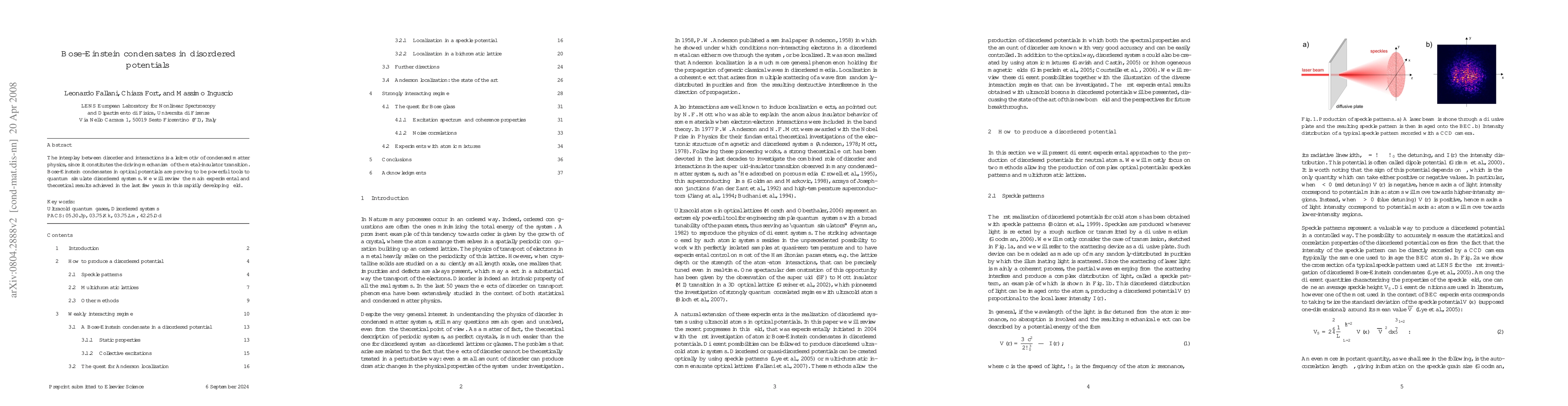 The interplay between disorder and interactions is a "leit-motiv" of condensed matter physics, since it constitutes the driving mechanism of the metal-insulator transition. Bose-Einstein condensates in optical potentials are proving to be powerful tools to quantum simulate disordered systems. We will review the main experimental and theoretical results achieved in the last few years in this rapidly developing field.