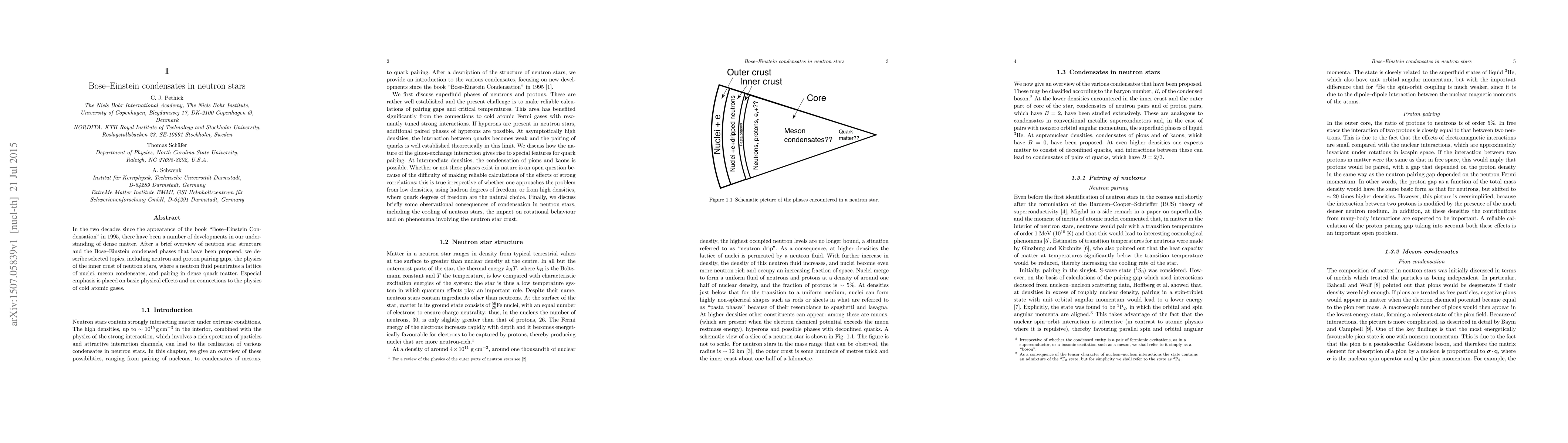 This paper reviews recent advancements in understanding neutron star structure, focusing on the Bose-Einstein condensates, neutron and proton pairing gaps, and the physics of the inner crust, while drawing parallels to cold atomic gases. It highlights the implications of meson condensates and dense quark matter pairing.