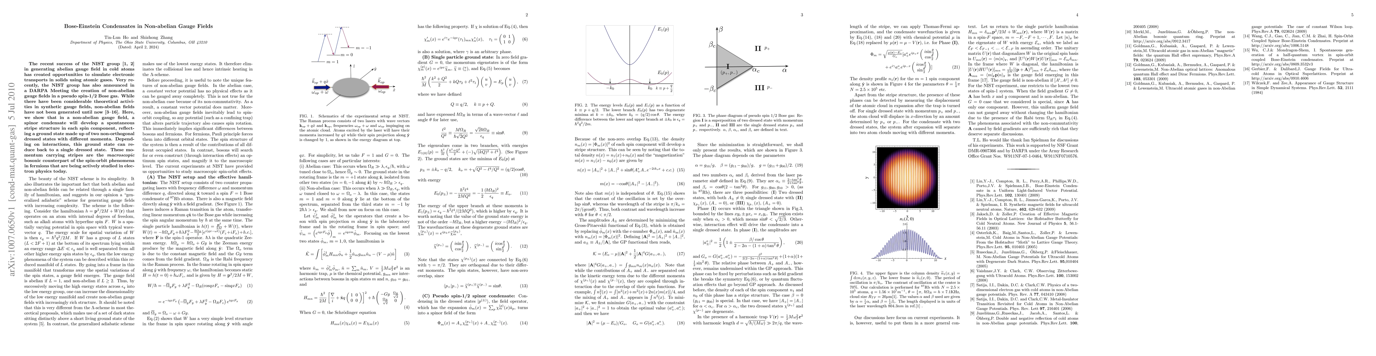 The recent success of the NIST group in generating abelian gauge field in cold atoms has created opportunities to simulate electronic transports in solids using atomic gases. Very recently, the NIST group has also announced in a DARPA Meeting the creation of non-abelian gauge fields in a pseudo spin-1/2 Bose gas. While there have been considerable theoretical activities in synthetic gauge fields, non-abelian fields have not been generated until now. Here, we show that in a non-abelian gauge field, a spinor condensate will develop a spontaneous stripe structure in each spin component, reflecting a ground state made up of two non-orthogonal dressed states with different momenta. Depending on interactions, this ground state can reduce back to a single dressed state. These momentum carrying stripes are the {\em macroscopic} bosonic counterpart of the spin-orbit phenomena in fermions that are being actively studied in electron physics today.