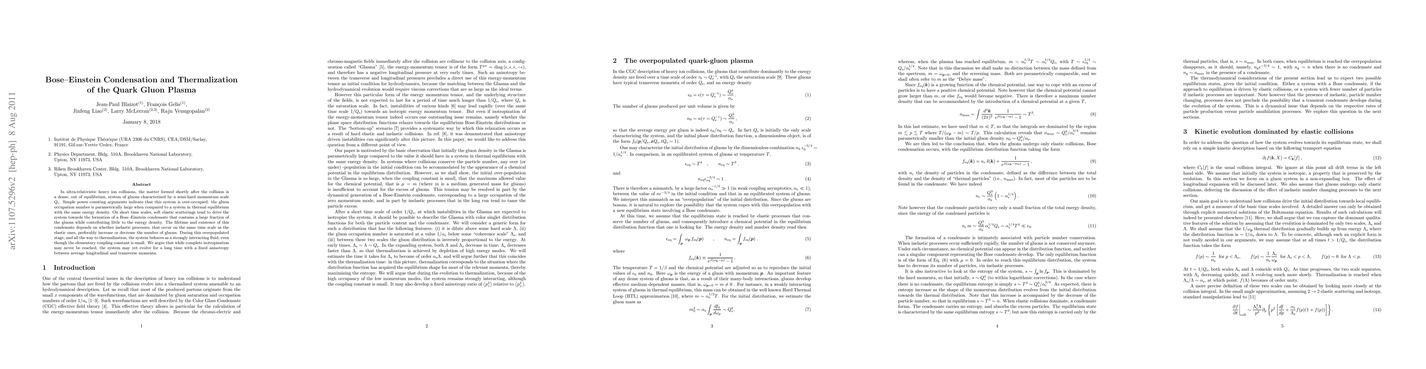 In ultra-relativistic heavy ion collisions, the matter formed shortly after the collision is a dense, out of equilibrium, system of gluons characterized by a semi-hard momentum scale $Q_{\rm s}$. Simple power counting arguments indicate that this system is over-occupied: the gluon occupation number is parametrically large when compared to a system in thermal equilibrium with the same energy density. On short time scales, soft elastic scatterings tend to drive the system towards the formation of a Bose--Einstein condensate that contains a large fraction of the gluons while contributing little to the energy density. The lifetime and existence of this condensate depends on whether inelastic processes, that occur on the same time scale as the elastic ones, preferably increase or decrease the number of gluons. During this overpopulated stage, and all the way to thermalization, the system behaves as a strongly interacting fluid, even though the elementary coupling constant is small. We argue that while complete isotropization may never be reached, the system may yet evolve for a long time with a fixed anisotropy between average longitudinal and transverse momenta.