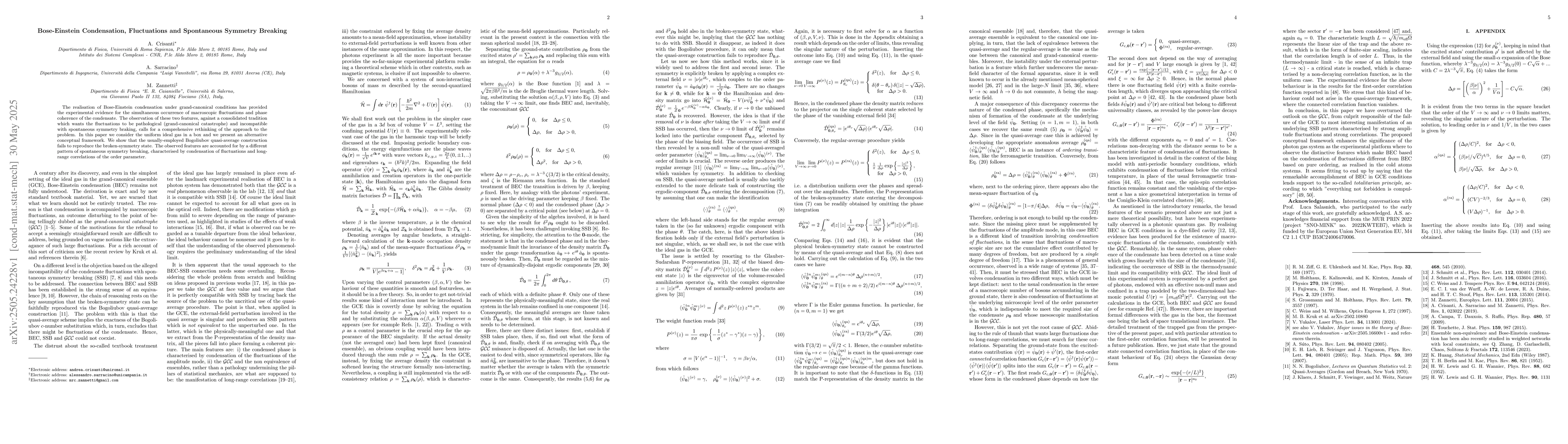 Researchers challenge traditional understanding of Bose-Einstein condensation by proposing a new framework that accounts for macroscopic fluctuations and phase coherence under grand-canonical conditions. They argue for a different pattern of spontaneous symmetry breaking characterized by fluctuations' condensation and long-range correlations.