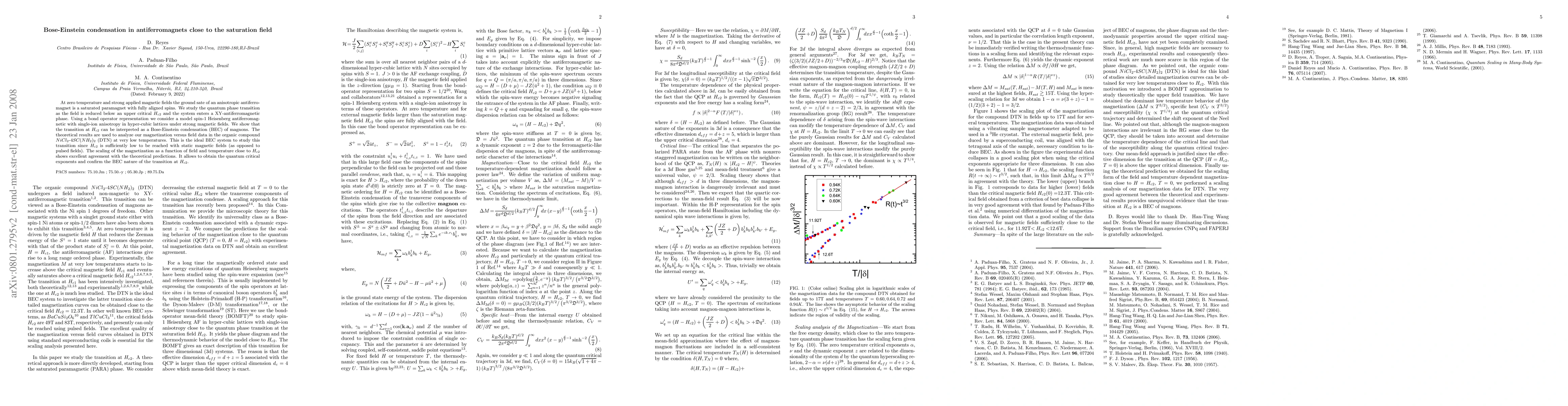 This paper investigates the quantum phase transition in an anisotropic antiferromagnet under strong magnetic fields, demonstrating that the transition at an upper critical field $H_{c2}$ can be interpreted as a Bose-Einstein condensation of magnons. Experimental data on the organic compound $NiCl_2$-$4SC(NH_2)_2$ (DTN) confirms the theoretical predictions, providing strong evidence for the BEC nature of the transition.