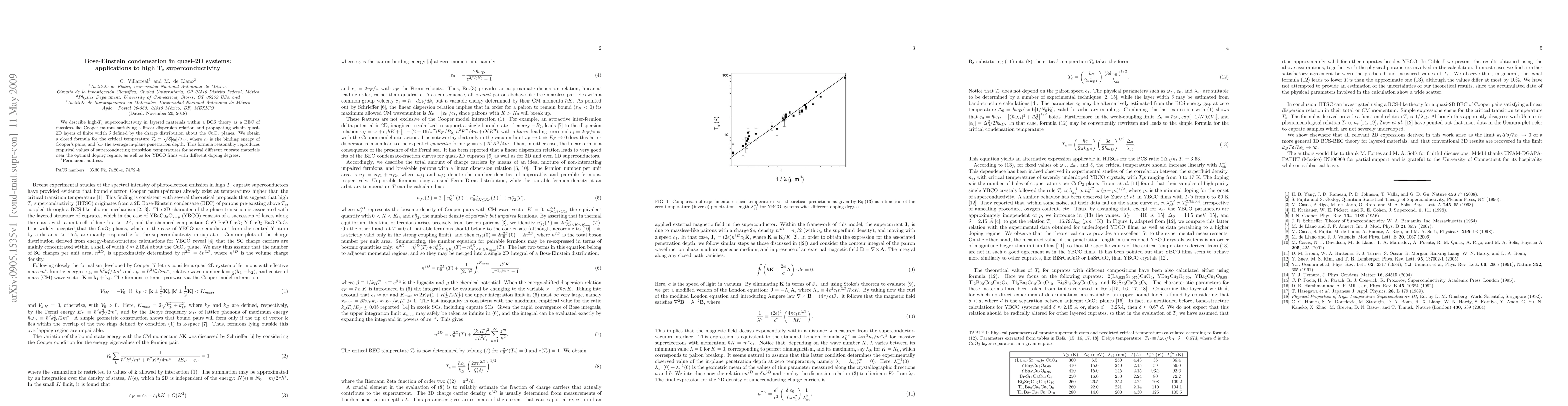 This paper proposes a Bose-Einstein condensation (BEC) model for high-Tc superconductivity in quasi-2D layered materials, describing Cooper pairs as propagating within finite-width layers. The derived formula for critical temperature, Tc, correlates well with empirical data for various cuprate superconductors.