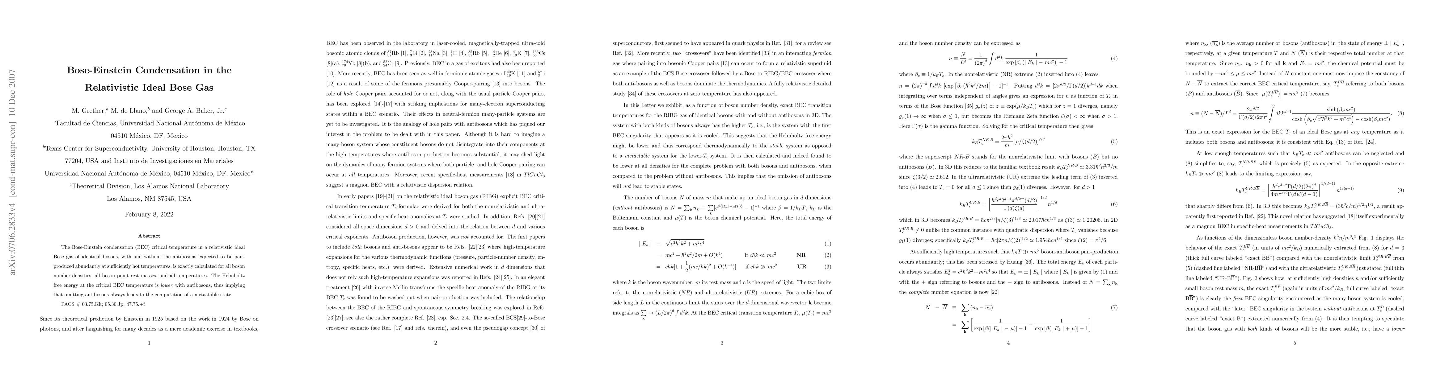 The study precisely calculates the Bose-Einstein condensation critical temperature in relativistic ideal Bose gases, demonstrating that including antibosons lowers the Helmholtz free energy, indicating that neglecting antibosons results in a metastable state.