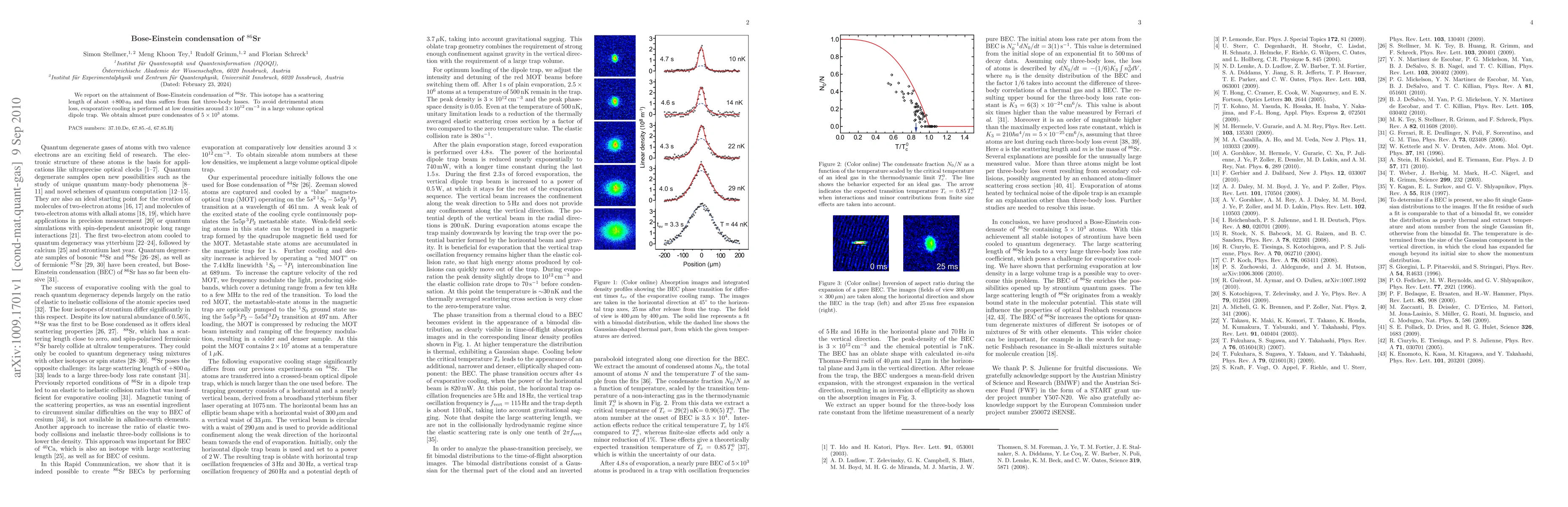 This research reports the successful creation of a Bose-Einstein condensate of 86Sr, overcoming challenges posed by its large scattering length through low-density evaporative cooling in a large volume optical dipole trap, resulting in nearly pure condensates of 5x10^3 atoms.