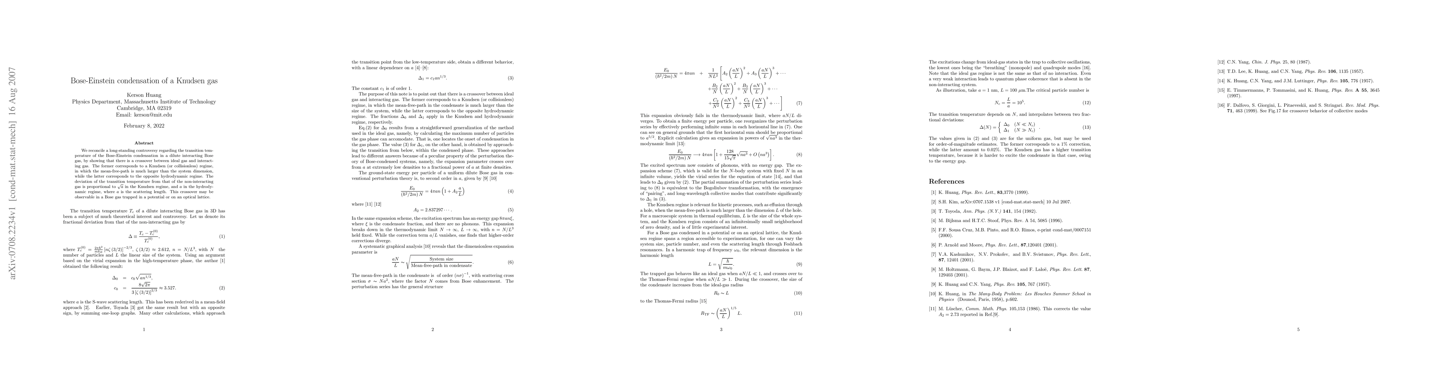 This paper resolves the debate on the transition temperature for Bose-Einstein condensation in a dilute interacting gas, demonstrating a crossover between ideal and interacting gas regimes. The transition temperature deviation is proportional to the scattering length's square root in the Knudsen regime and linearly in the hydrodynamic regime.