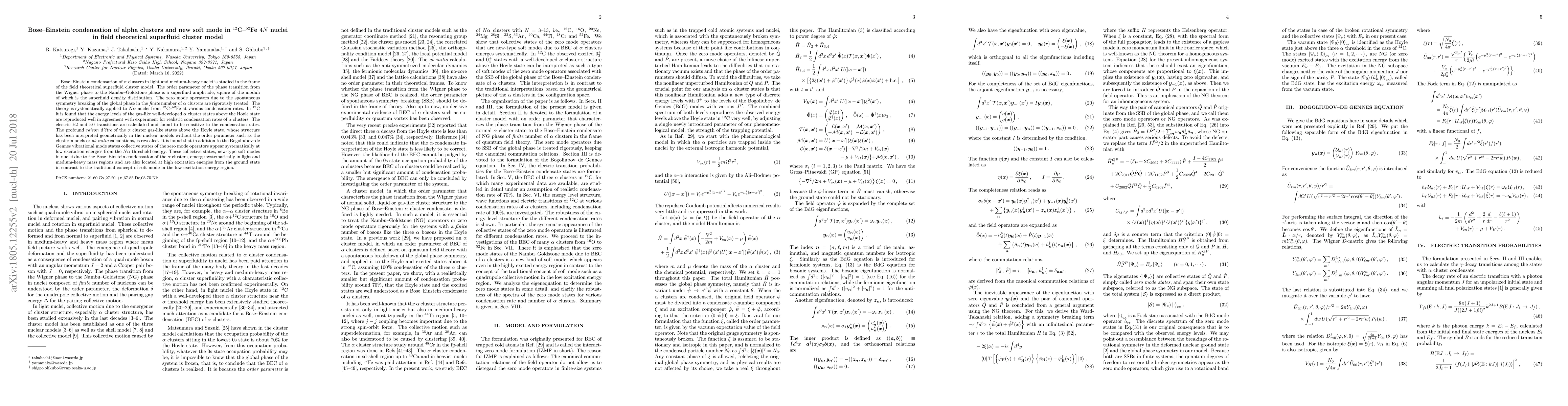 This paper investigates the Bose-Einstein condensation of alpha clusters in light and medium-heavy nuclei using a field theoretical superfluid cluster model, revealing the emergence of new soft mode collective states at high excitation energies due to alpha cluster condensation. The model successfully reproduces experimental data for alpha cluster states in 12C and predicts new collective excitation modes in 12C-52Fe nuclei.