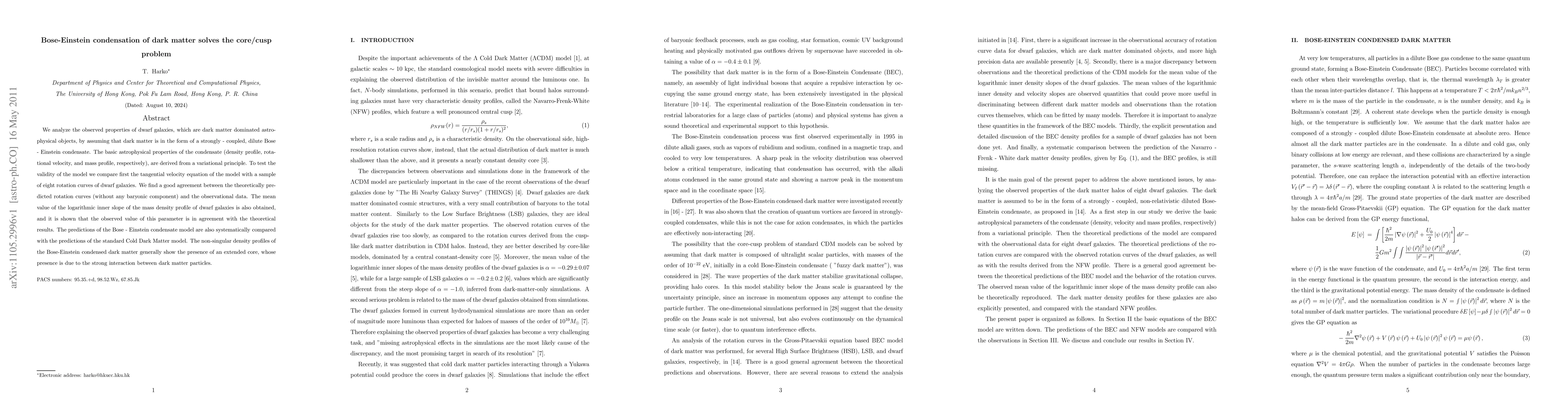 We analyze the observed properties of dwarf galaxies, which are dark matter dominated astrophysical objects, by assuming that dark matter is in the form of a strongly - coupled, dilute Bose - Einstein condensate. The basic astrophysical properties of the condensate (density profile, rotational velocity, and mass profile, respectively), are derived from a variational principle. To test the validity of the model we compare first the tangential velocity equation of the model with a sample of eight rotation curves of dwarf galaxies. We find a good agreement between the theoretically predicted rotation curves (without any baryonic component) and the observational data. The mean value of the logarithmic inner slope of the mass density profile of dwarf galaxies is also obtained, and it is shown that the observed value of this parameter is in agreement with the theoretical results. The predictions of the Bose - Einstein condensate model are also systematically compared with the predictions of the standard Cold Dark Matter model. The non-singular density profiles of the Bose-Einstein condensed dark matter generally show the presence of an extended core, whose presence is due to the strong interaction between dark matter particles.