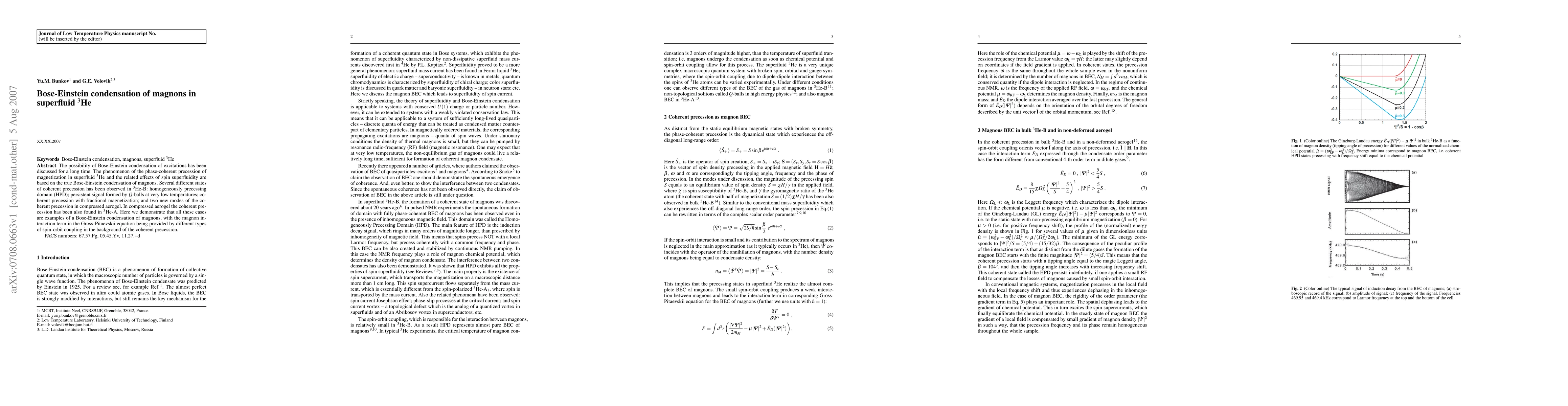 The research explores Bose-Einstein condensation (BEC) of magnons in superfluid 3He, identifying various states of coherent precession as manifestations of BEC, with different spin-orbit couplings providing interaction terms in the Gross-Pitaevskii equation. The study highlights new modes of coherent precession observed in compressed aerogel.