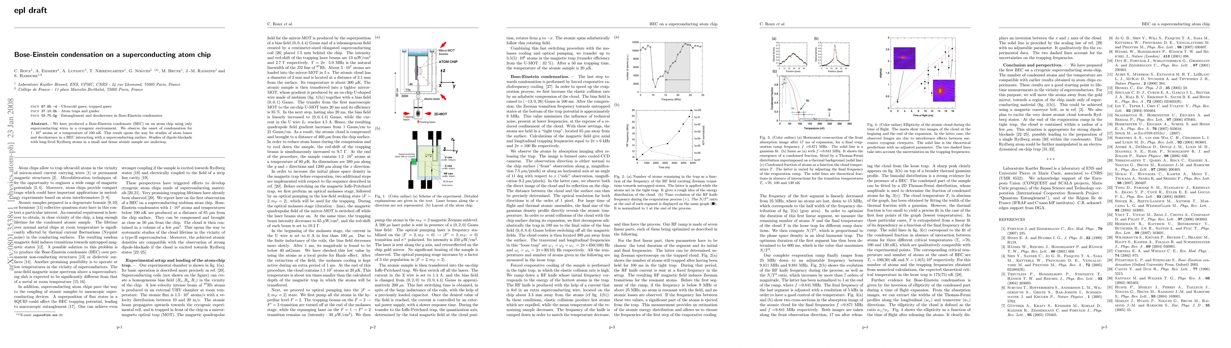 Summary: Researchers successfully created a Bose-Einstein condensate on a superconducting atom chip at 100 nK, utilizing superconducting wires in a cryogenic setting, paving the way for further studies on atom losses, decoherence, and dipole-blockade with Rydberg atoms.