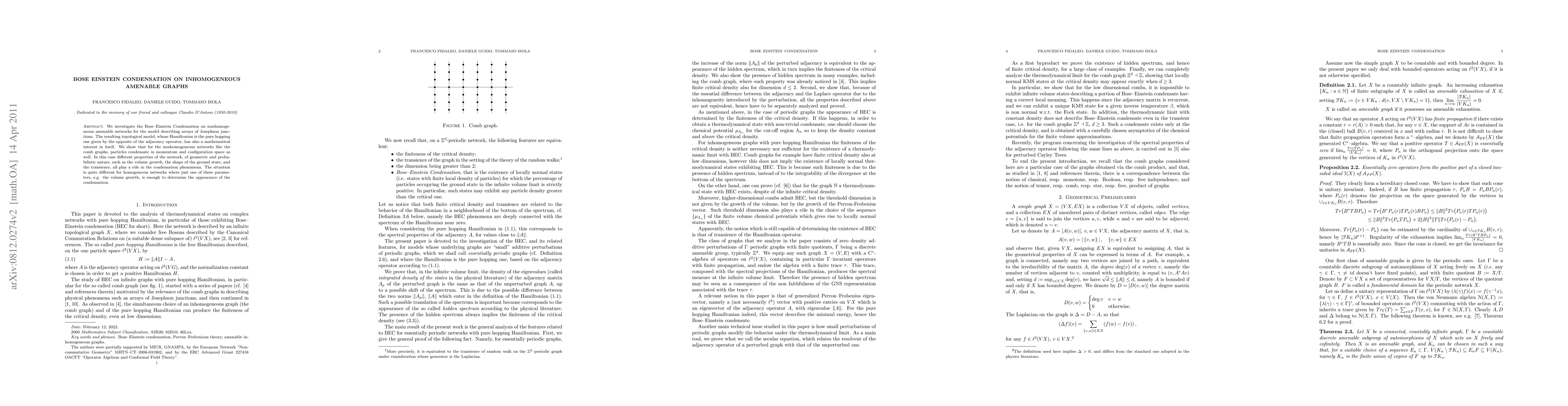 This paper explores Bose-Einstein condensation on nonhomogeneous amenable graphs, specifically in the context of Josephson junction arrays. It finds that in nonhomogeneous networks like comb graphs, various network properties influence condensation, whereas in homogeneous networks, only volume growth determines condensation.