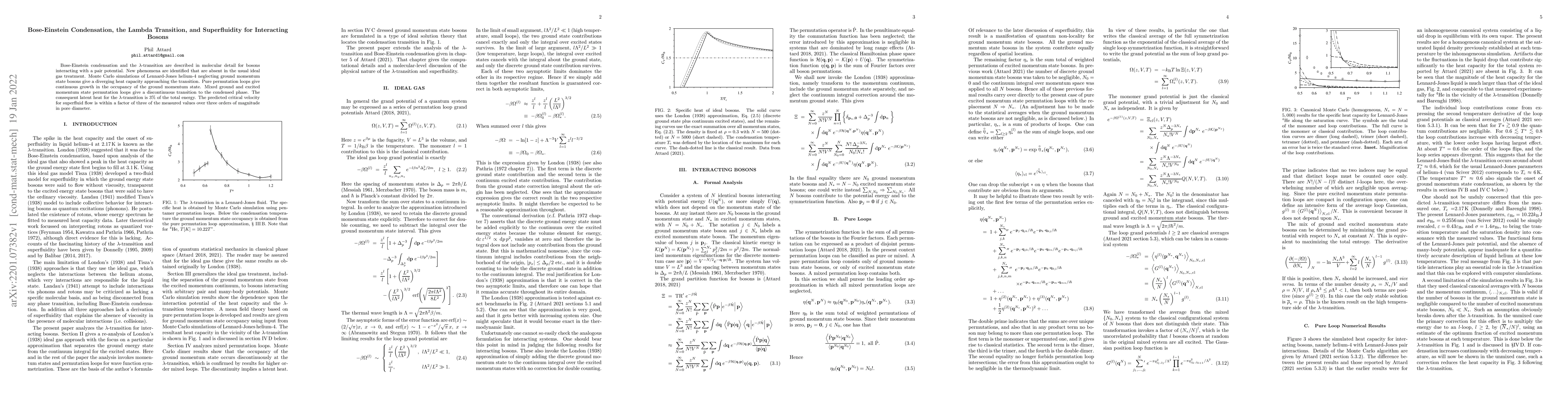 Bose-Einstein condensation and the $\lambda$-transition are described in molecular detail for bosons interacting with a pair potential. New phenomena are identified that are absent in the usual ideal gas treatment. Monte Carlo simulations of Lennard-Jones helium-4 neglecting ground momentum state bosons give a diverging heat capacity approaching the transition. Pure permutation loops give continuous growth in the occupancy of the ground momentum state. Mixed ground and excited momentum state permutation loops give a discontinuous transition to the condensed phase. The consequent latent heat for the $\lambda$-transition is 3\% of the total energy. The predicted critical velocity for superfluid flow is within a factor of three of the measured values over three orders of magnitude in pore diameter.