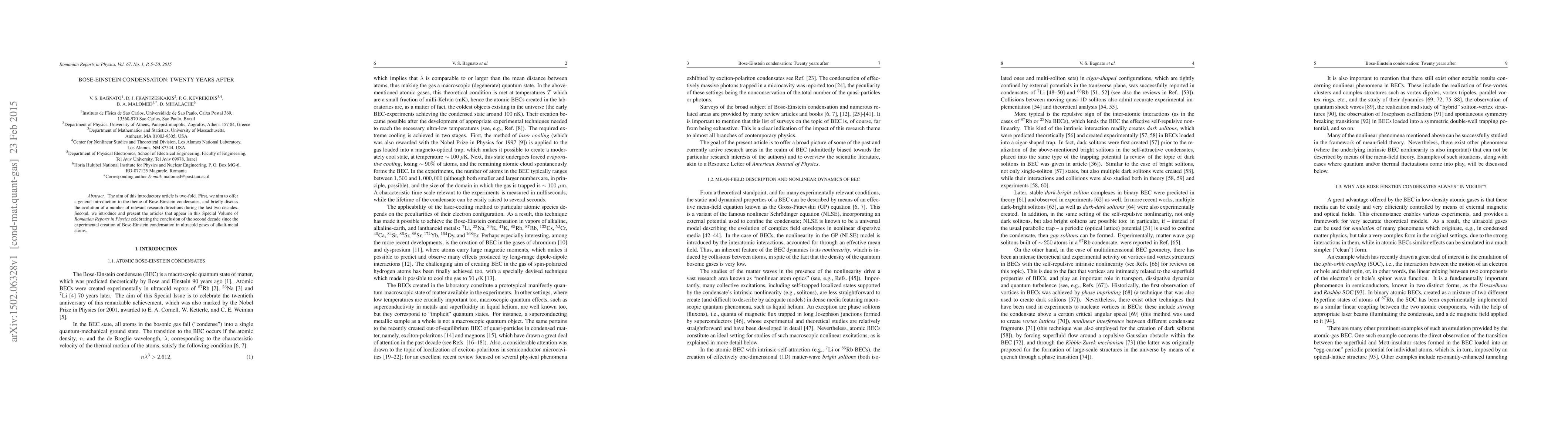 This paper provides an overview of Bose-Einstein condensates, summarizing key research developments over the past twenty years and introducing a special volume dedicated to the topic, marking the second decade since their experimental realization in ultracold alkali-metal gases.