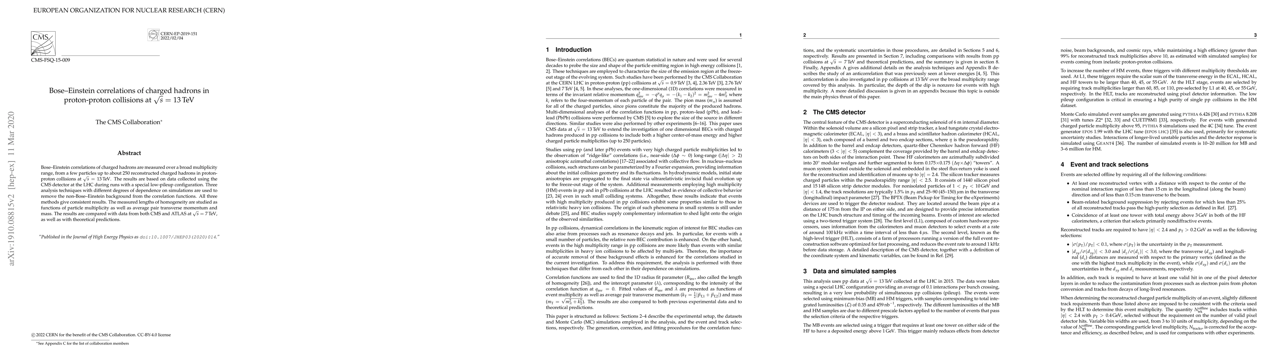 This paper measures Bose-Einstein correlations of charged hadrons in proton-proton collisions at 13 TeV, using data from the CMS detector at the LHC. The study employs three analysis techniques to isolate these correlations, finding consistent results and comparing them with lower-energy data and theoretical predictions.