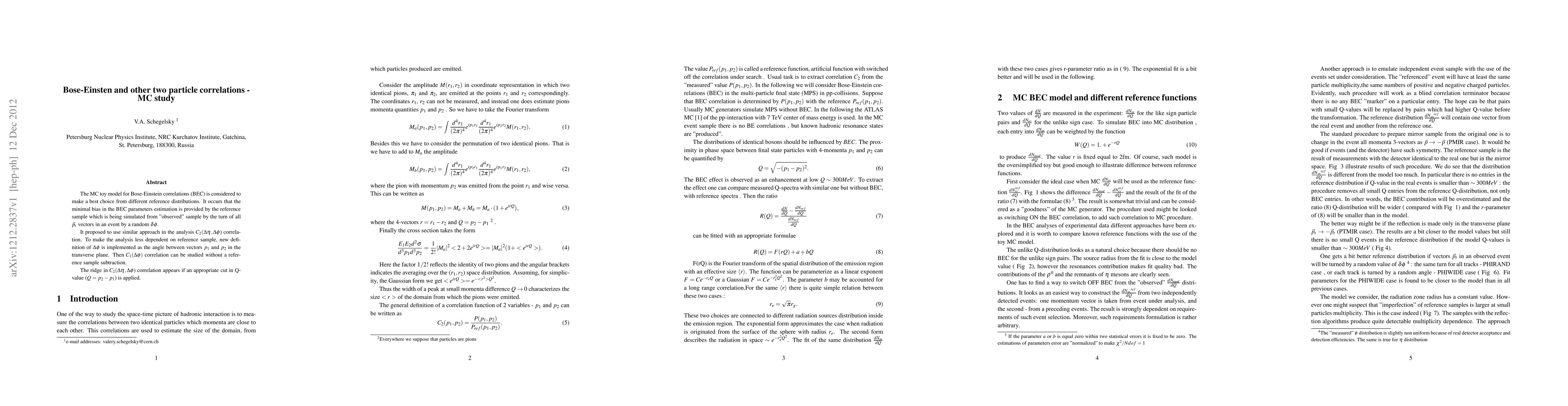 The Monte Carlo toy model of Bose-Einstein correlations is considered to make a best choice from different reference distributions. It occurs that the minimal bias in the Bose-Einstein correlation parameters estimation is provided by the reference sample which is being emulated from a real sample by the turn of all vectors in an event by a random angle in the transverse plane. It proposed to use similar approach in the analysis of two-dimensional correlation. To make the analysis less dependent on a reference sample, new definition of azimuthal angle difference is implemented as the angle between vectors in the transverse plane. Then one-dimensional correlation of azimuthal angles can be studied without a reference sample subtraction. The ridge in two-dimensional correlation appears if an appropriate cut in pair invariant masses is applied.