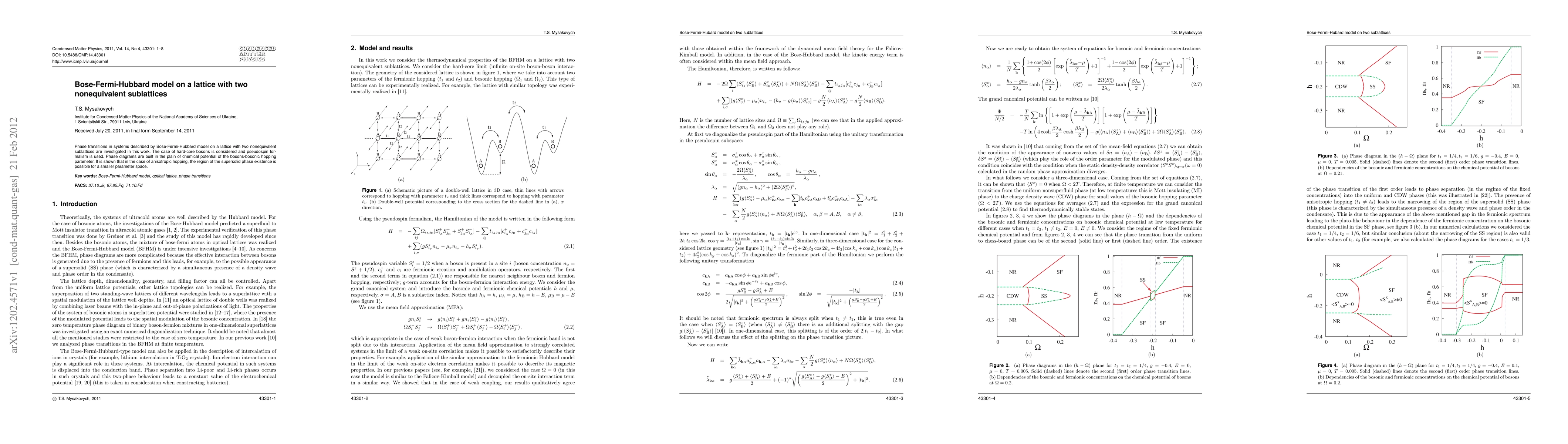 This study investigates phase transitions in a Bose-Fermi-Hubbard model on a lattice with two nonequivalent sublattices, focusing on hard-core bosons and employing pseudospin formalism. The research reveals that anisotropic hopping can lead to a supersolid phase within a smaller parameter space.