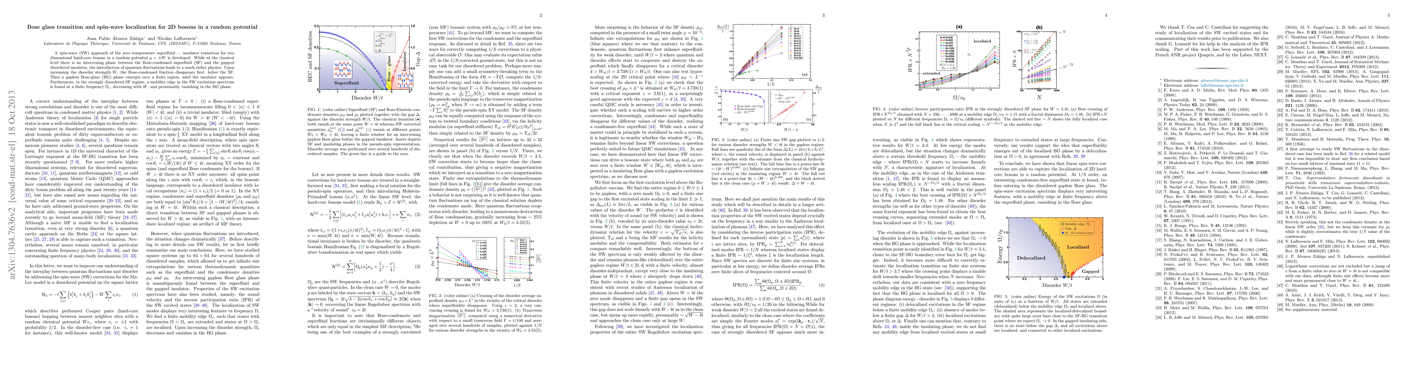 This paper explores the superfluid-insulator transition in two-dimensional hard-core bosons under a random potential, revealing a Bose-glass phase characterized by spin-wave localization. Quantum fluctuations lead to a gapless Bose-glass phase before the complete disappearance of the superfluid, accompanied by a mobility edge in the spin-wave spectrum.