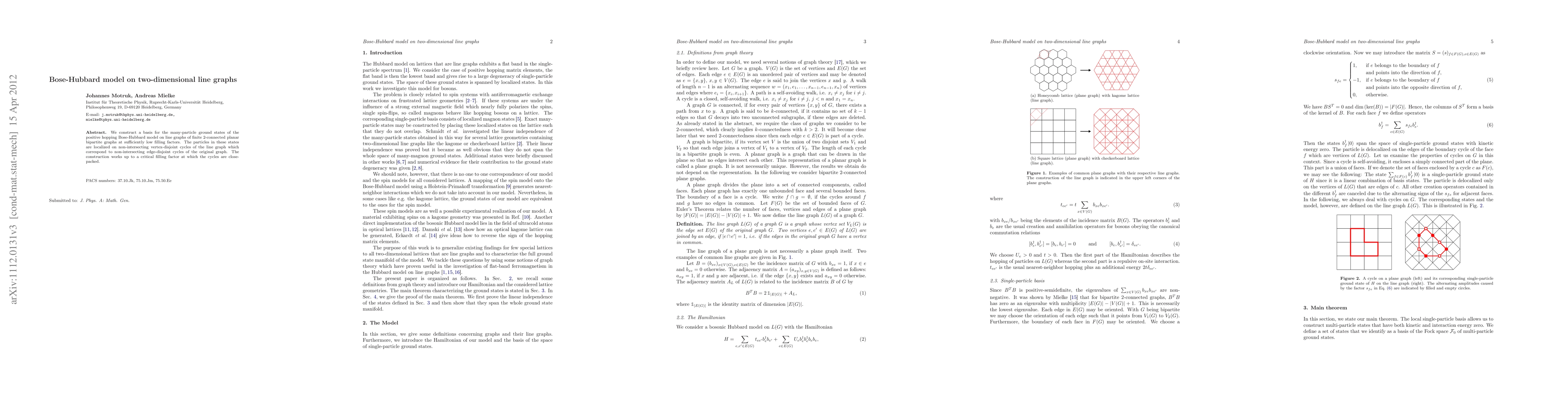 We construct a basis for the many-particle ground states of the positive hopping Bose-Hubbard model on line graphs of finite 2-connected planar bipartite graphs at sufficiently low filling factors. The particles in these states are localized on non-intersecting vertex-disjoint cycles of the line graph which correspond to non-intersecting edge-disjoint cycles of the original graph. The construction works up to a critical filling factor at which the cycles are close-packed.