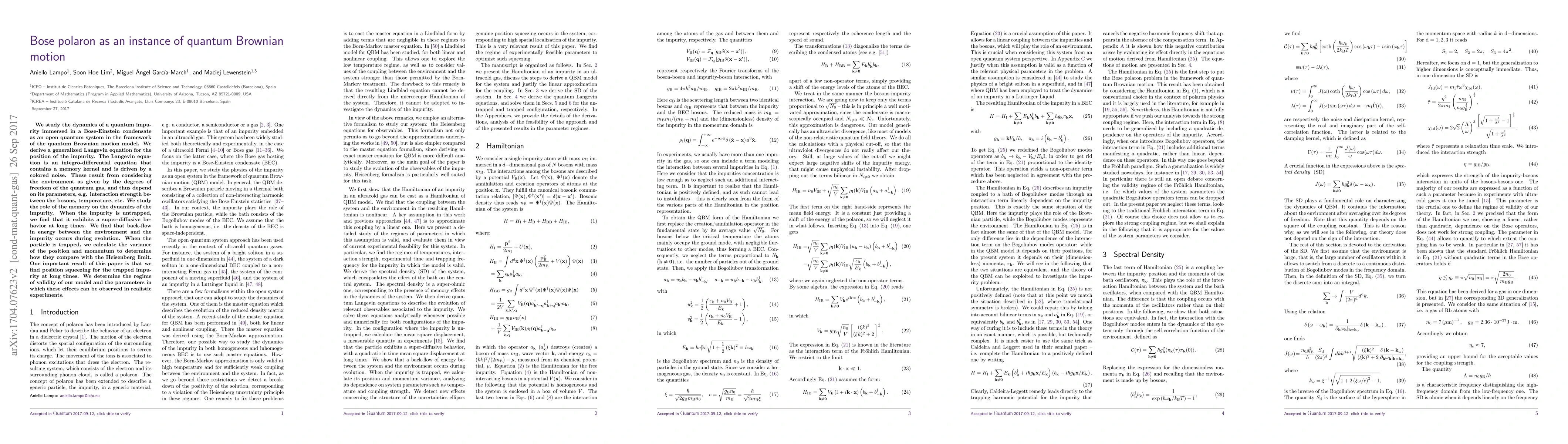 We study the dynamics of a quantum impurity immersed in a Bose-Einstein condensate as an open quantum system in the framework of the quantum Brownian motion model. We derive a generalized Langevin equation for the position of the impurity. The Langevin equation is an integrodifferential equation that contains a memory kernel and is driven by a colored noise. These result from considering the environment as given by the degrees of freedom of the quantum gas, and thus depend on its parameters, e.g. interaction strength between the bosons, temperature, etc. We study the role of the memory on the dynamics of the impurity. When the impurity is untrapped, we find that it exhibits a super-diffusive behavior at long times. We find that back-flow in energy between the environment and the impurity occurs during evolution. When the particle is trapped, we calculate the variance of the position and momentum to determine how they compare with the Heisenberg limit. One important result of this paper is that we find position squeezing for the trapped impurity at long times. We determine the regime of validity of our model and the parameters in which these effects can be observed in realistic experiments.
