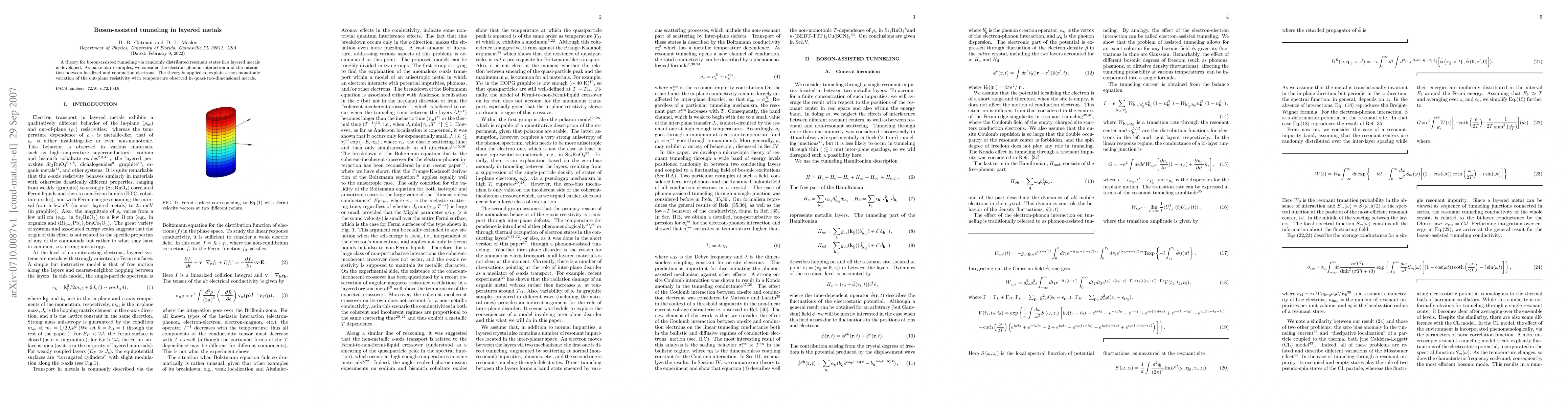 This paper develops a theoretical framework for boson-assisted tunneling in layered metals, focusing on interactions like electron-phonon and localized-conduction electron interactions. It explains the observed non-monotonic temperature dependence of out-plane resistivity in quasi-two-dimensional metals.