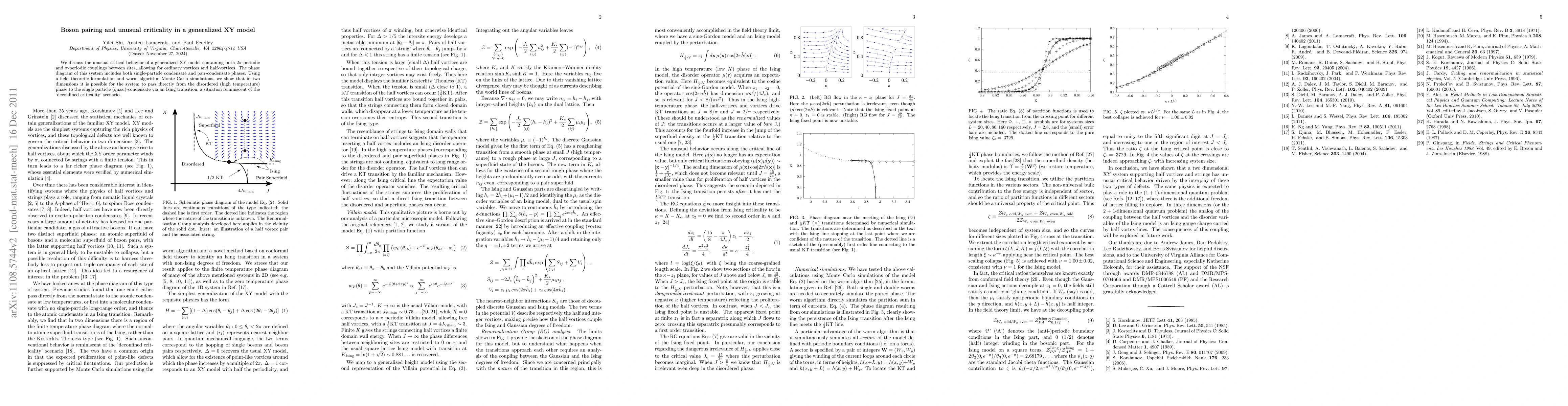This paper investigates the critical behavior of a generalized XY model with mixed 2π-periodic and π-periodic couplings, revealing the presence of vortices and half-vortices. It demonstrates a unique phase transition in two dimensions, transitioning directly from the disordered phase to a single-particle condensate via an Ising transition, akin to deconfined criticality.