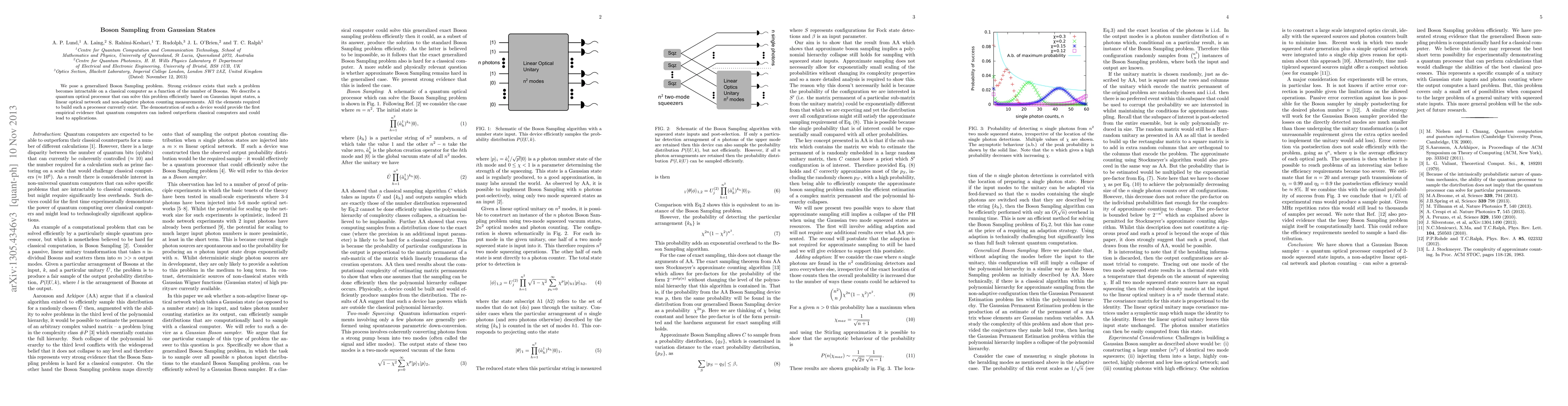 A quantum optical processor can solve Boson Sampling efficiently using Gaussian input states, linear optical networks, and non-adaptive photon counting measurements, potentially outperforming classical computers.