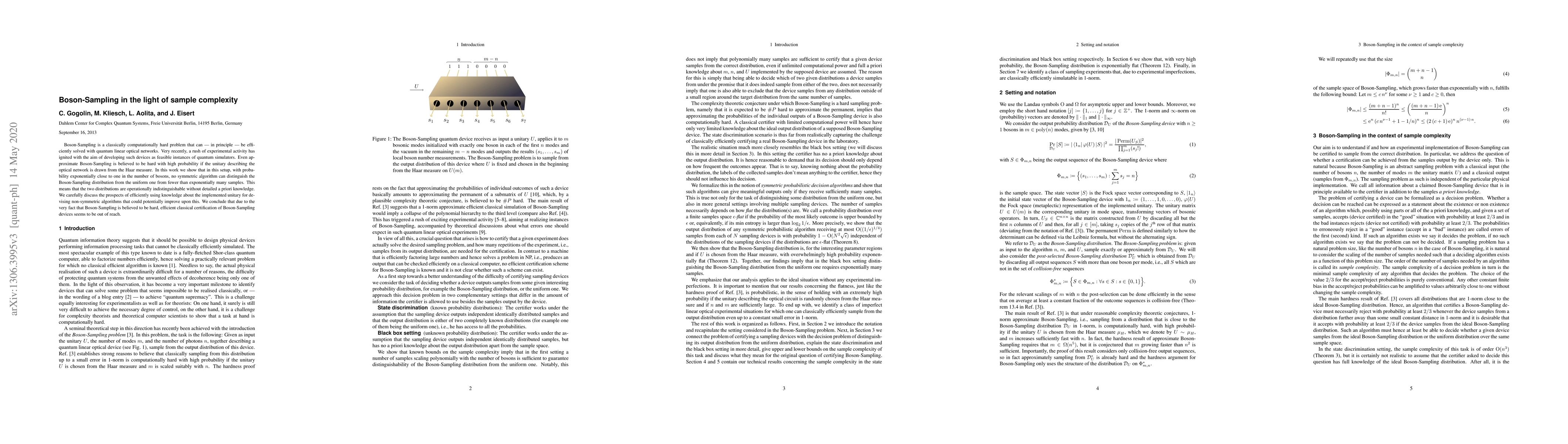 This paper demonstrates that distinguishing Boson-Sampling distributions from uniform ones requires exponentially many samples, suggesting operational indistinguishability without detailed prior knowledge. It concludes that efficient classical certification of Boson-Sampling devices is unlikely due to the inherent computational difficulty of the task.