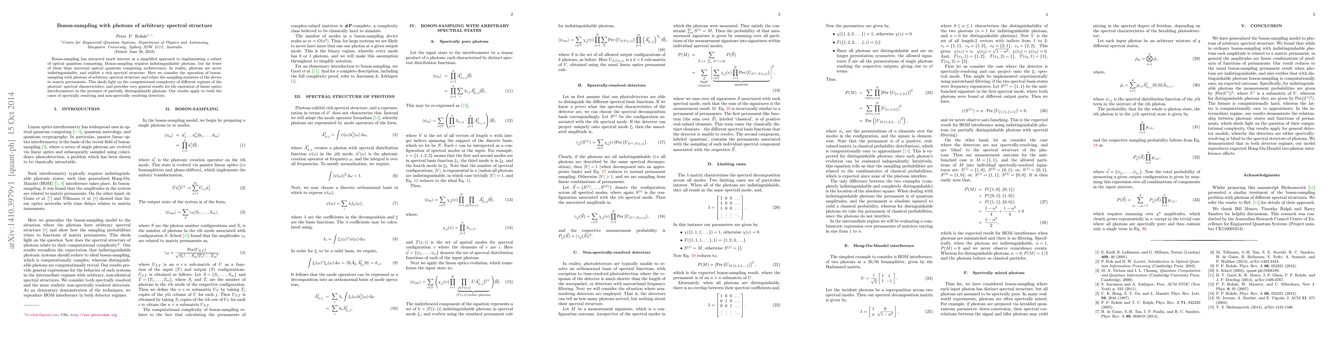 This paper explores boson-sampling with photons that have arbitrary spectral structures, demonstrating how the sampling statistics relate to matrix permanents. It provides insights into the computational complexity of different spectral regimes and applies to both spectrally resolving and non-spectrally resolving detectors.