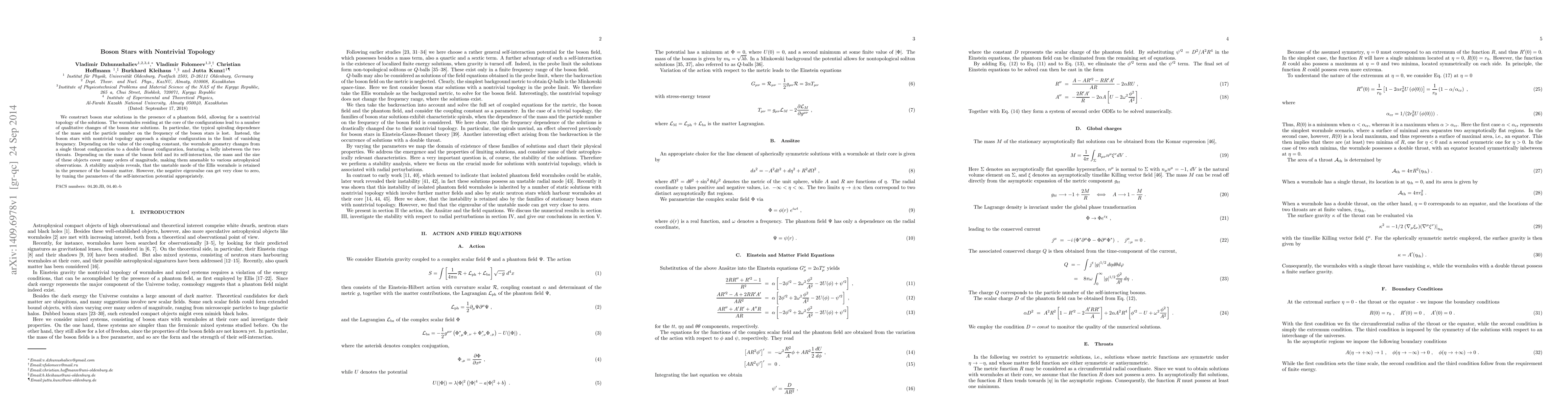 We construct boson star solutions in the presence of a phantom field, allowing for a nontrivial topology of the solutions. The wormholes residing at the core of the configurations lead to a number of qualitative changes of the boson star solutions. In particular, the typical spiraling dependence of the mass and the particle number on the frequency of the boson stars is lost. Instead, the boson stars with nontrivial topology approach a singular configuration in the limit of vanishing frequency. Depending on the value of the coupling constant, the wormhole geometry changes from a single throat configuration to a double throat configuration, featuring a belly inbetween the two throats. Depending on the mass of the boson field and its self-interaction, the mass and the size of these objects cover many orders of magnitude, making them amenable to various astrophysical observations. A stability analysis reveals, that the unstable mode of the Ellis wormhole is retained in the presence of the bosonic matter. However, the negative eigenvalue can get very close to zero, by tuning the parameters of the self-interaction potential appropriately.
