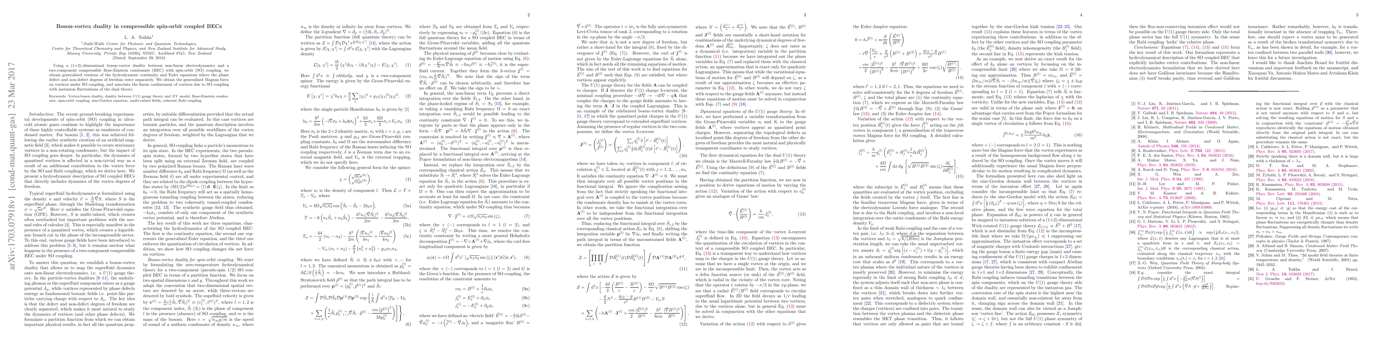 Researchers discovered a duality between boson vortices in a type of gas called a Bose-Einstein condensate and non-linear electrodynamics, leading to new equations that explain how vortices behave under spin-orbit coupling.