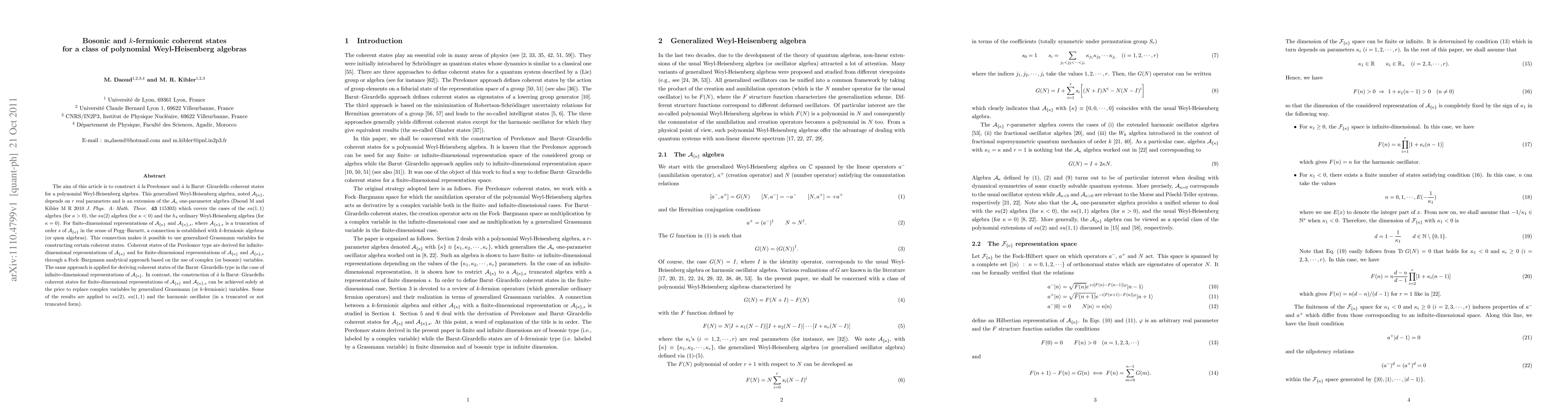 The aim of this article is to construct \`a la Perelomov and \`a la Barut-Girardello coherent states for a polynomial Weyl-Heisenberg algebra. This generalized Weyl-Heisenberg algebra, noted A(x), depends on r real parameters and is an extension of the one-parameter algebra introduced in Daoud M and Kibler MR 2010 J. Phys. A: Math. Theor. 43 115303 which covers the cases of the su(1,1) algebra (for x > 0), the su(2) algebra (for x < 0) and the h(4) ordinary Weyl-Heisenberg algebra (for x = 0). For finite-dimensional representations of A(x) and A(x,s), where A(x,s) is a truncation of order s of A(x) in the sense of Pegg-Barnett, a connection is established with k-fermionic algebras (or quon algebras). This connection makes it possible to use generalized Grassmann variables for constructing certain coherent states. Coherent states of the Perelomov type are derived for infinite-dimensional representations of A(x) and for finite-dimensional representations of A(x) and A(x,s) through a Fock-Bargmann analytical approach based on the use of complex (or bosonic) variables. The same approach is applied for deriving coherent states of the Barut-Girardello type in the case of infinite-dimensional representations of A(x). In contrast, the construction of \`a la Barut-Girardello coherent states for finite-dimensional representations of A(x) and A(x,s) can be achieved solely at the price to replace complex variables by generalized Grassmann (or k-fermionic) variables. Some of the results are applied to su(2), su(1,1) and the harmonic oscillator (in a truncated or not truncated form).