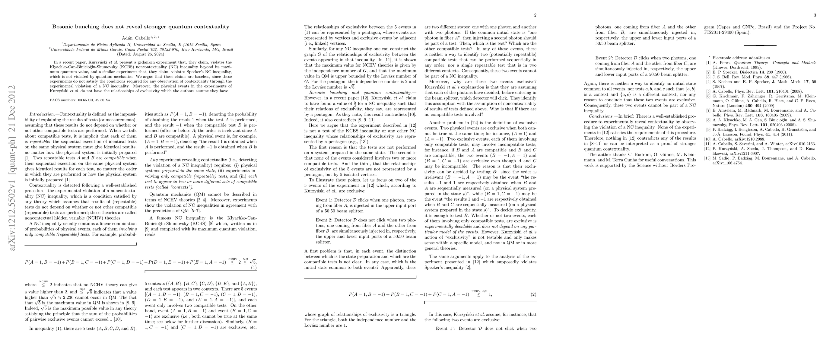 The paper disputes Kurzynski et al.'s claim of revealing stronger quantum contextuality through bosonic bunching, arguing that their experiments fail to meet the necessary conditions for demonstrating contextuality and that the physical events do not exhibit the exclusivity relationships assumed by the authors.