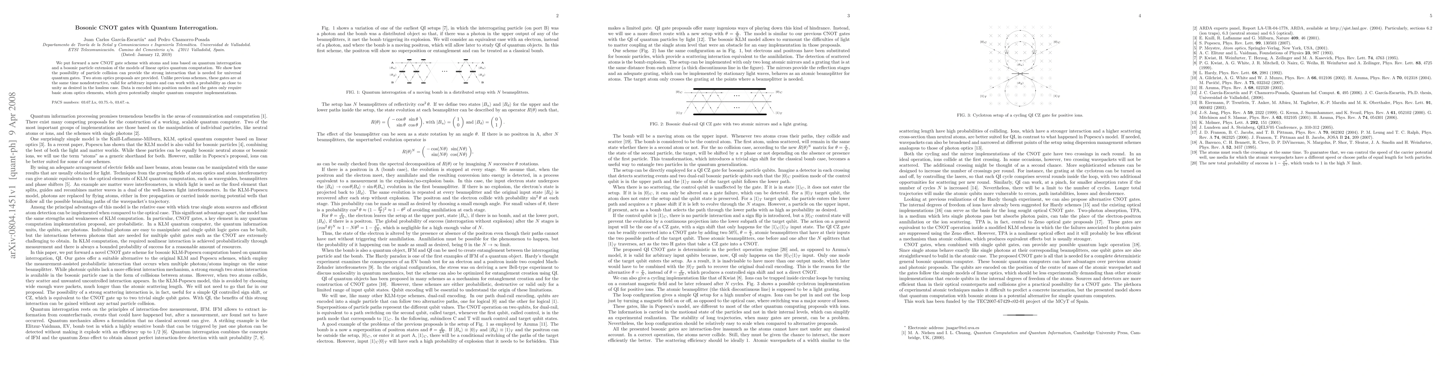 This paper proposes a novel CNOT gate scheme using atoms and ions based on quantum interrogation and bosonic particle models, enabling strong interaction through particle collision. The scheme offers nondestructive, universal quantum gates with high probability and simplicity in implementation using basic atom optics.