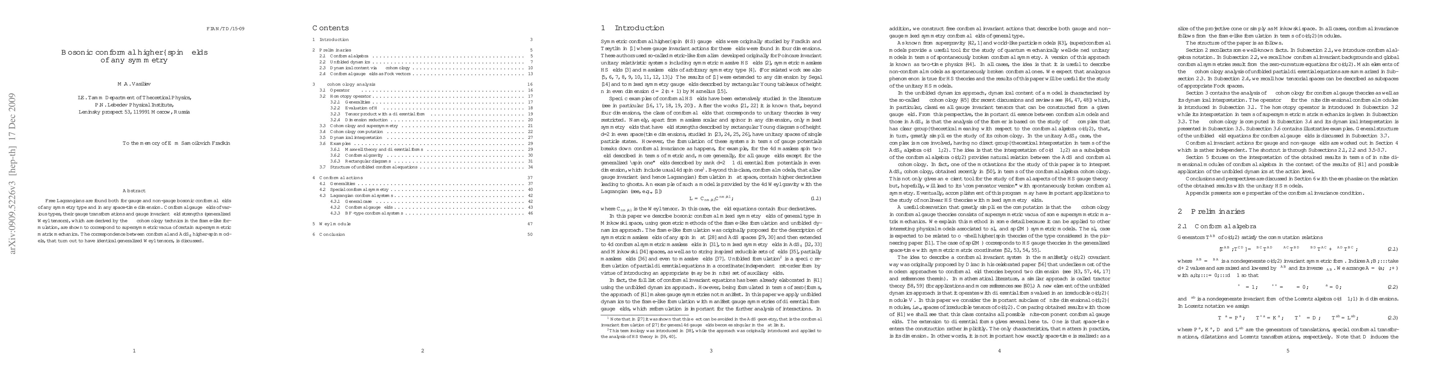 This paper presents free Lagrangians for bosonic conformal higher-spin fields of any symmetry type in any dimension, revealing their correspondence to supersymmetric vacua via $\sigma_-$ cohomology. It also discusses the equivalence between conformal and $AdS_d$ higher-spin models through their shared generalized Weyl tensors.
