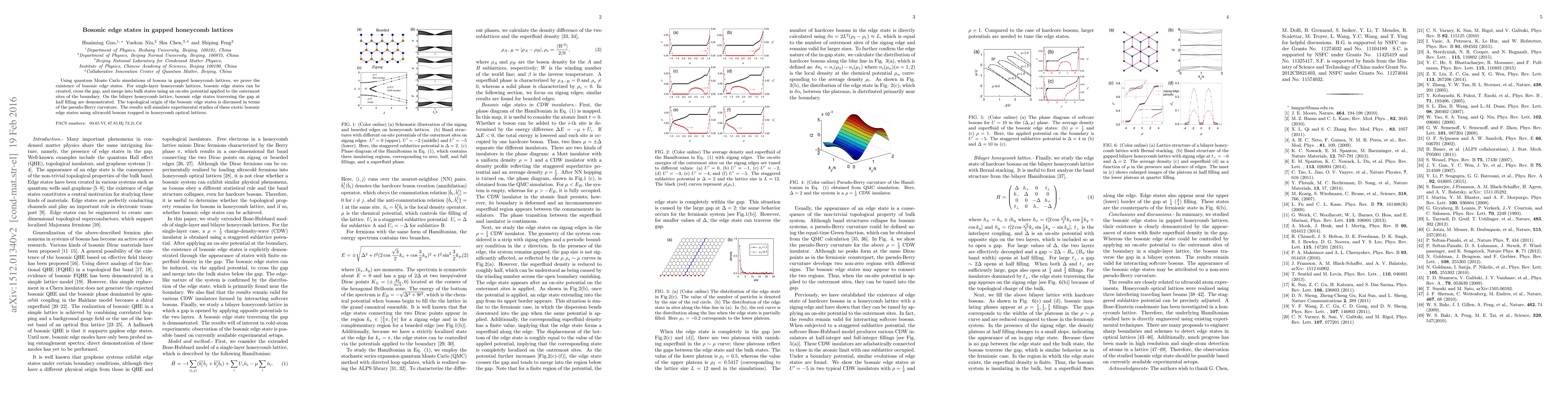 This research demonstrates the existence of controllable bosonic edge states in gapped honeycomb lattices using quantum Monte Carlo simulations. It shows how these edge states can traverse the energy gap and merge into bulk states through boundary potentials, with topological origins discussed via pseudo Berry curvature.