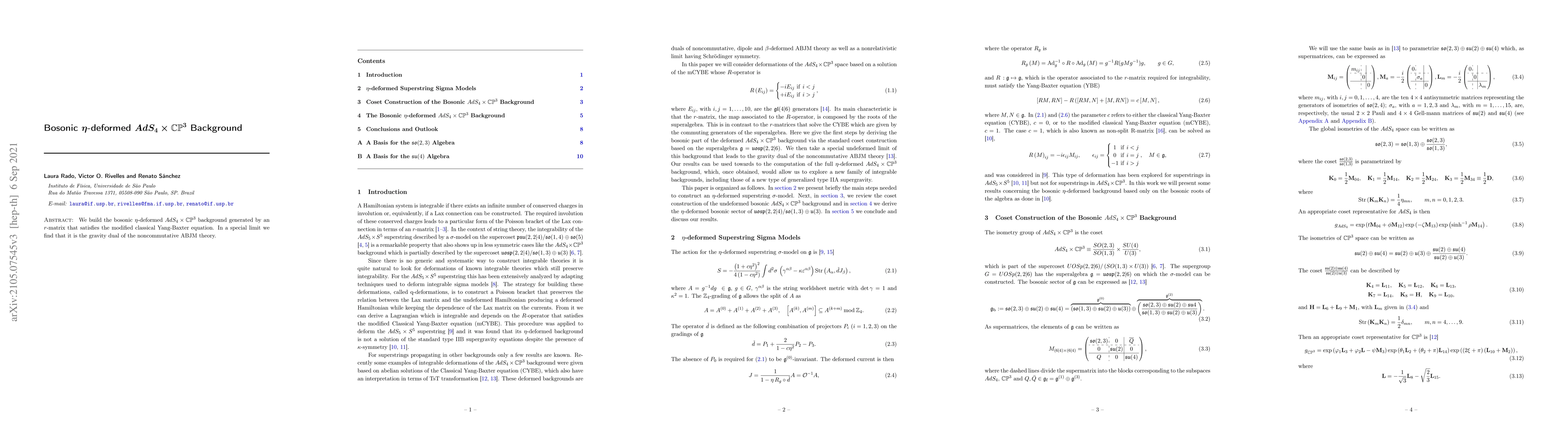 We build the bosonic $\eta$-deformed $AdS_4\times\mathbb{CP}^3$ background generated by an $r$-matrix that satisfies the modified classical Yang-Baxter equation. In a special limit we find that it is the gravity dual of the noncommutative ABJM theory.