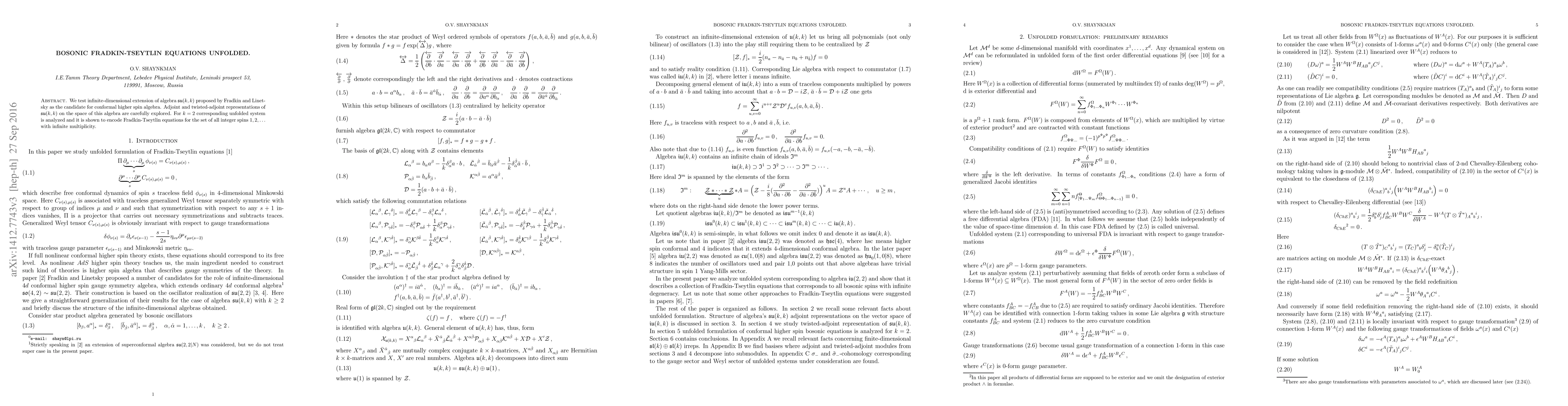 We test infinite-dimensional extension of algebra su(k,k) proposed by Fradkin and Linetsky as the candidate for conformal higher spin algebra. Adjoint and twisted-adjoint representations of su(k,k) on the space of this algebra are carefully explored. For k=2 corresponding unfolded system is analyzed and it is shown to encode Fradkin-Tseytlin equations for the set of all integer spins 1,2,... with infinite multiplicity.