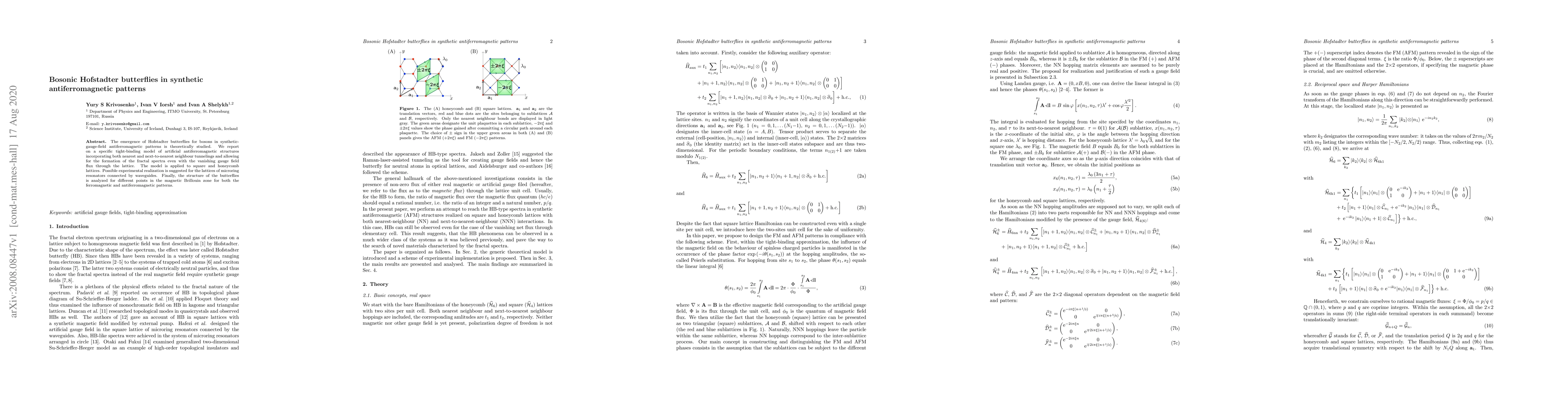 This paper investigates the emergence of bosonic Hofstadter butterflies in synthetic antiferromagnetic patterns using a tight-binding model. It explores fractal spectra in square and honeycomb lattices, suggesting microring resonators as a potential experimental realization. The study analyzes the butterfly structure in various magnetic Brillouin zones for both ferromagnetic and antiferromagnetic patterns.