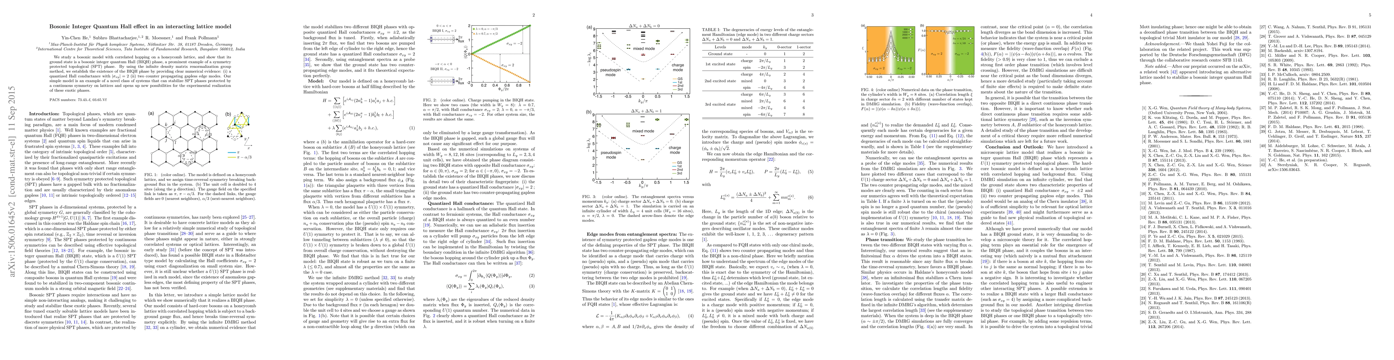 This paper investigates a bosonic model on a honeycomb lattice with correlated hopping, demonstrating the existence of a bosonic integer quantum Hall (BIQH) phase—a symmetry protected topological (SPT) phase. Numerical evidence from the infinite density matrix renormalization group method shows a quantized Hall conductance and two counter-propagating gapless edge modes.