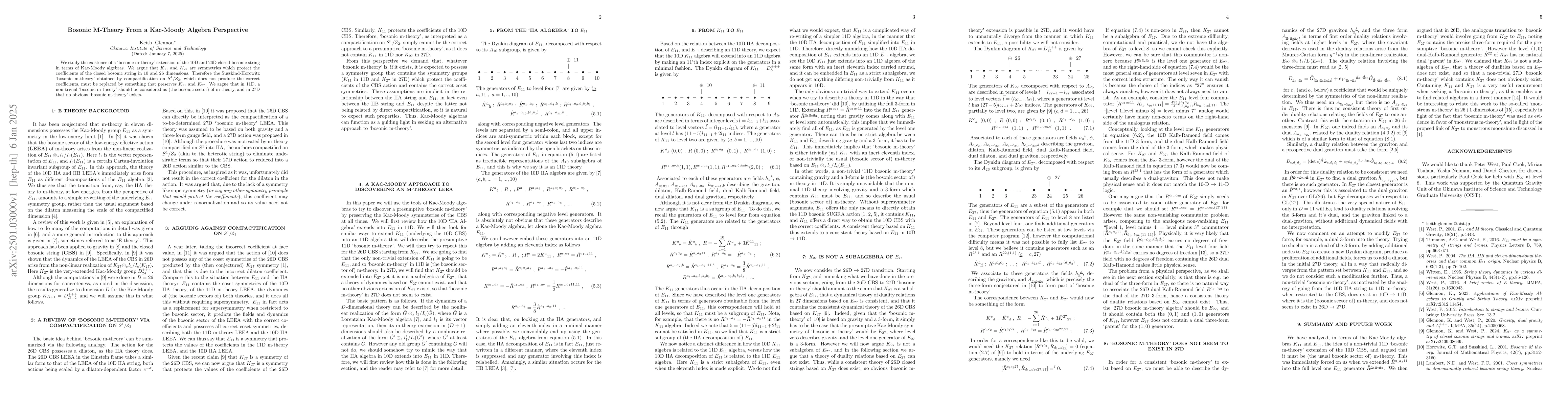 This paper explores the existence of a bosonic m-theory extension in 10D and 26D closed bosonic string theory through Kac-Moody algebra symmetries, K11 and K27, arguing that these symmetries must be preserved for correct coefficient consistency. It concludes that the Susskind-Horowitz m-theory requires replacement in 11D and no clear bosonic m-theory exists in 27D.