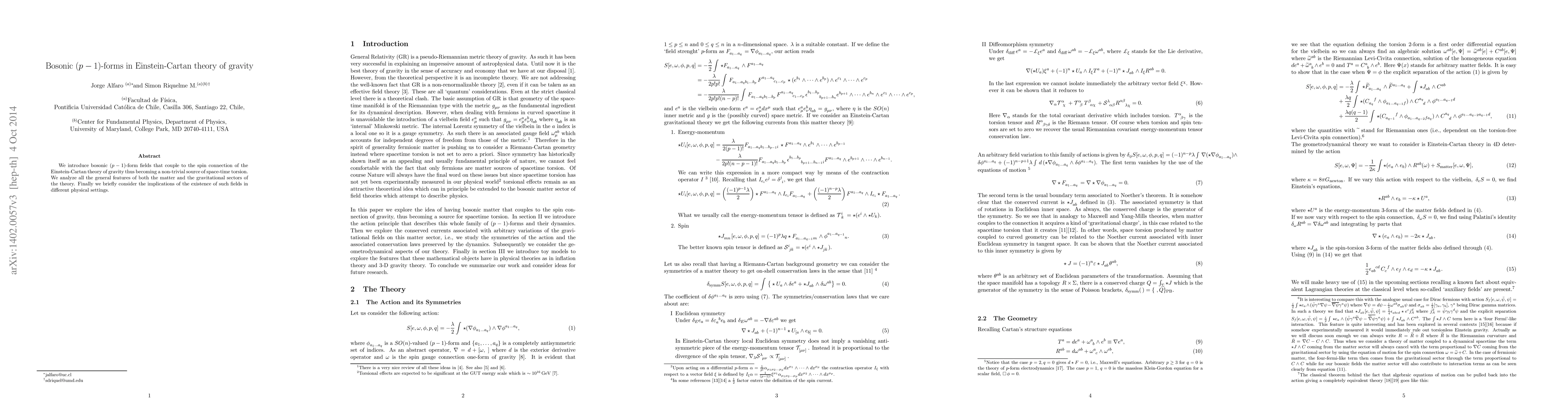 We introduce bosonic (p - 1)-form fields that couple to the spin connection of the Einstein-Cartan theory of gravity thus becoming a non-trivial source of space-time torsion. We analyze all the general features of both the matter and the gravitational sectors of the theory. Finally we briefly consider the implications of the existence of such fields in different physical settings.