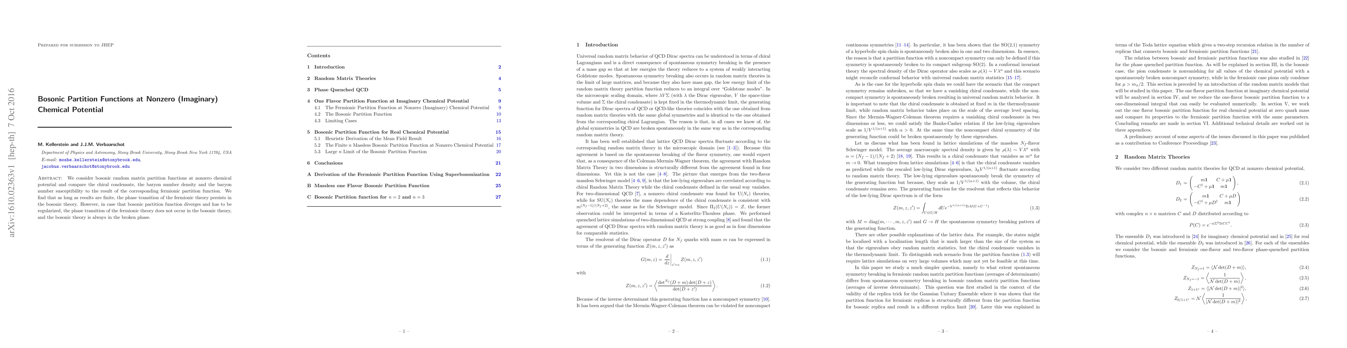 This paper investigates bosonic partition functions under nonzero imaginary chemical potential, comparing them to fermionic counterparts. It finds that the fermionic phase transition persists in the bosonic theory when results are finite, but diverges and loses its transition when regularization is required, leaving the bosonic theory in a broken phase.