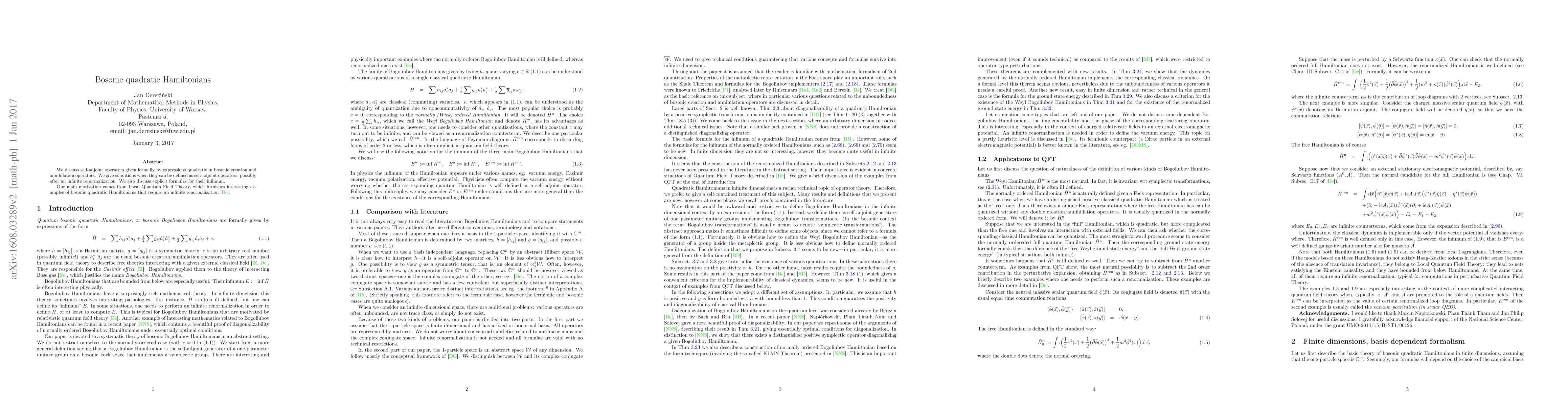 This paper explores the conditions under which quadratic expressions in bosonic creation and annihilation operators can be defined as self-adjoint operators, often necessitating infinite renormalization. It provides explicit formulas for their infimum and is motivated by examples from Local Quantum Field Theory.
