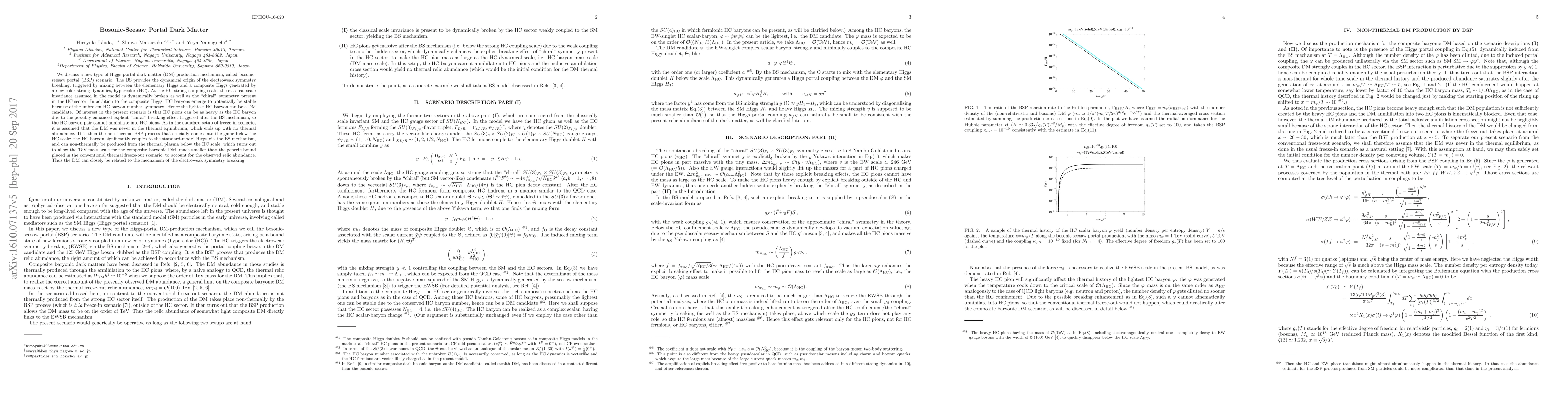 We discuss a new type of Higgs-portal dark matter (DM)-production mechanism, called bosonic-seesaw portal (BSP) scenario. The BS provides the dynamical origin of the electroweak symmetry breaking, triggered by mixing between the elementary Higgs and a composite Higgs generated by a new-color strong dynamics, hypercolor (HC). At the HC strong coupling scale, the classical-scale invariance assumed in the model is dynamically broken as well as the "chiral" symmetry present in the HC sector. In addition to the composite Higgs, HC baryons emerge to potentially be stable because of the unbroken HC baryon number symmetry. Hence the lightest HC baryon can be a DM candidate. Of interest in the present scenario is that HC pions can be as heavy as the HC baryon due to the possibly enhanced-explicit "chiral"-breaking effect triggered after the BS mechanism, so the HC baryon pair cannot annihilate into HC pions. As in the standard setup of freeze-in scenario, it is assumed that the DM was never in the thermal equilibrium, which ends up with no thermal abundance. It is then the non-thermal BSP process that crucially comes into the game below the HC scale: the HC baryon significantly couples to the standard-model Higgs via the BS mechanism, and can non-thermally be produced from the thermal plasma below the HC scale, which turns out to allow the TeV mass scale for the composite baryonic DM, much smaller than the generic bound placed in the conventional thermal freeze-out scenario, to account for the observed relic abundance. Thus the DM can closely be related to the mechanism of the electroweak symmetry breaking.