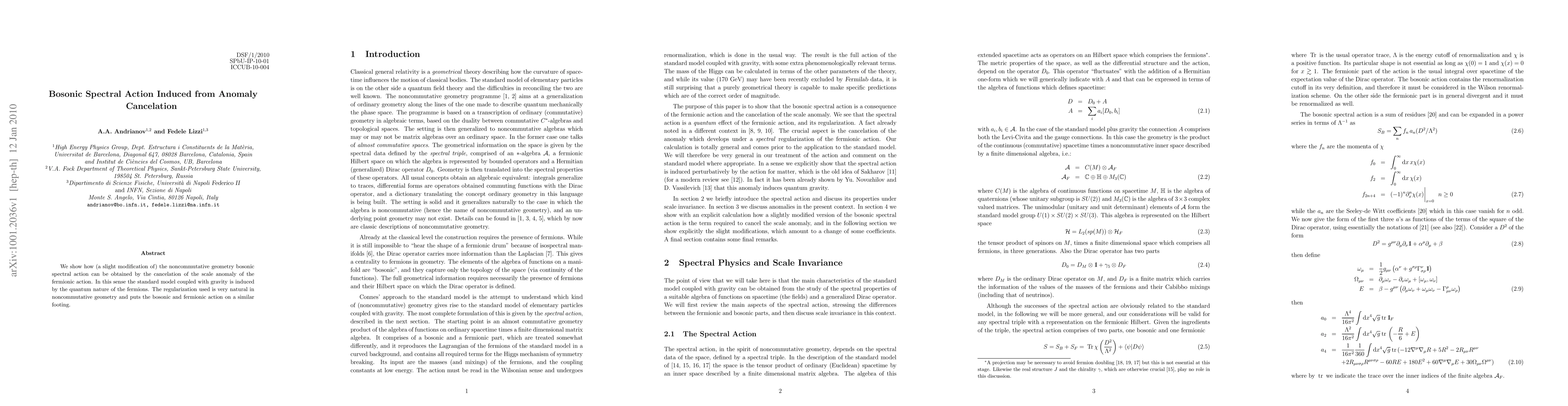 Researchers show that canceling scale anomaly in fermionic action can induce a bosonic spectral action, effectively creating the Standard Model with gravity.