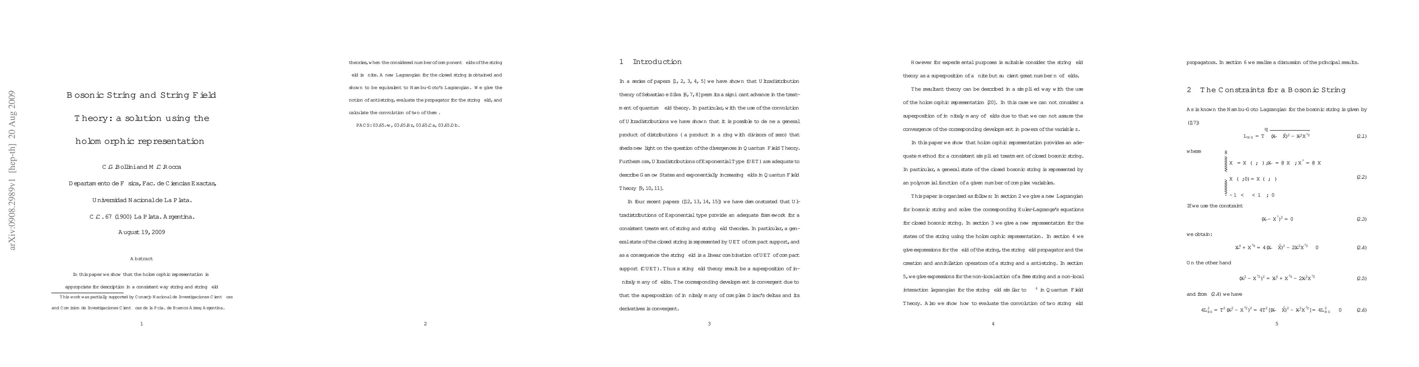 In this paper we show that the holomorphic representation is appropriate for description in a consistent way string and string field theories, when the considered number of component fields of the string field is finite. A new Lagrangian for the closed string is obtained and shown to be equivalent to Nambu-Goto's Lagrangian. We give the notion of anti-string, evaluate the propagator for the string field, and calculate the convolution of two of them.