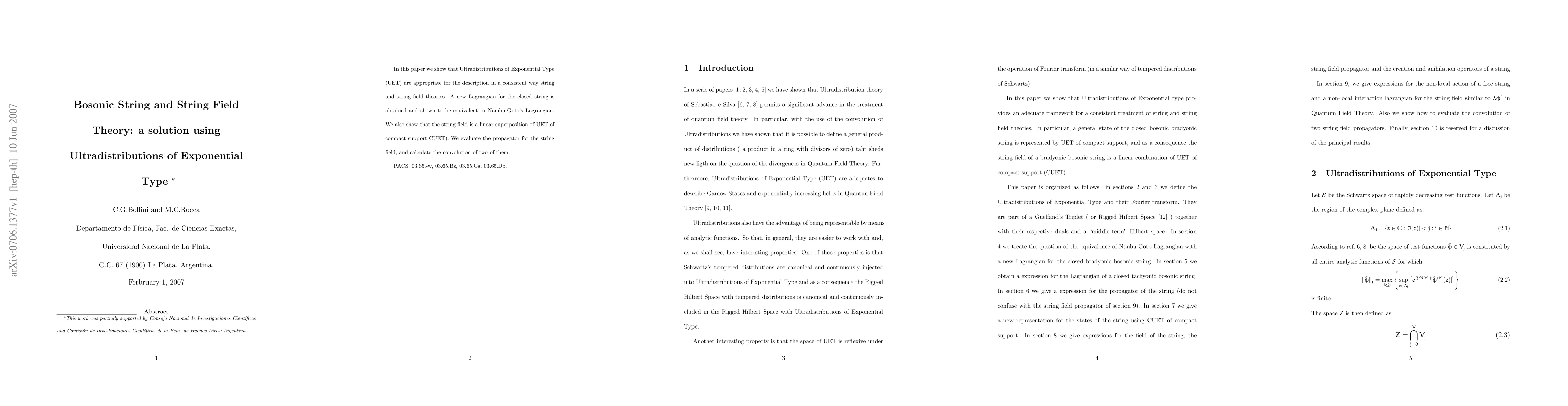This paper uses Ultradistributions of Exponential Type to describe string and string field theories, introducing a new Lagrangian for closed strings equivalent to Nambu-Goto's Lagrangian.