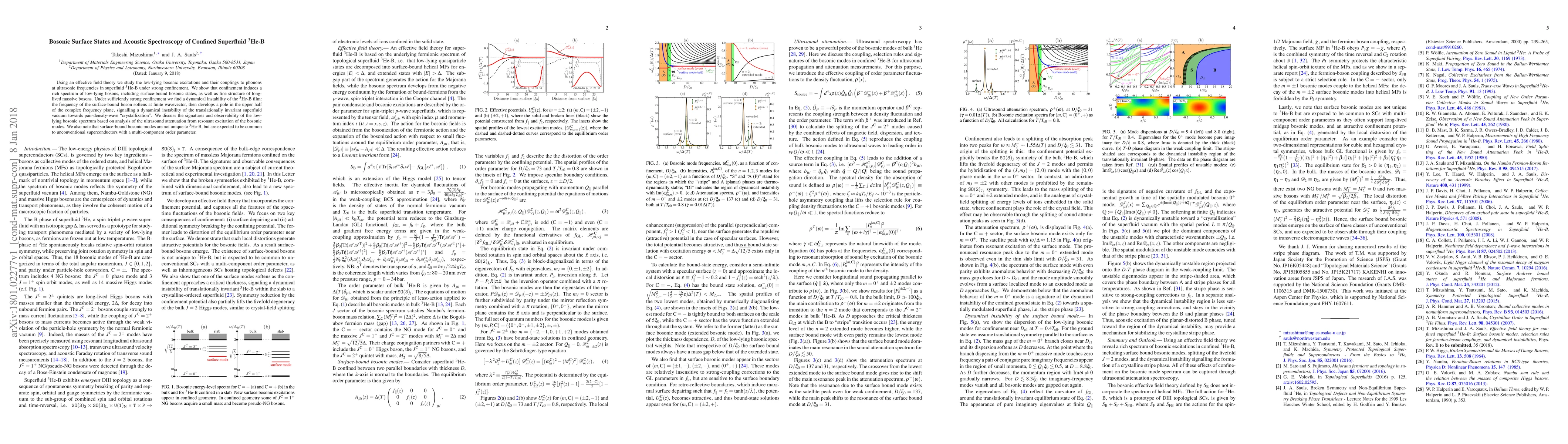 This paper investigates the low-lying bosonic excitations in confined superfluid $^3$He-B using effective field theory, revealing a spectrum of surface-bound bosons and a dynamical instability leading to pair-density-wave "crystallization." The study suggests observable signatures via acoustic spectroscopy and extends the findings to unconventional superconductors.