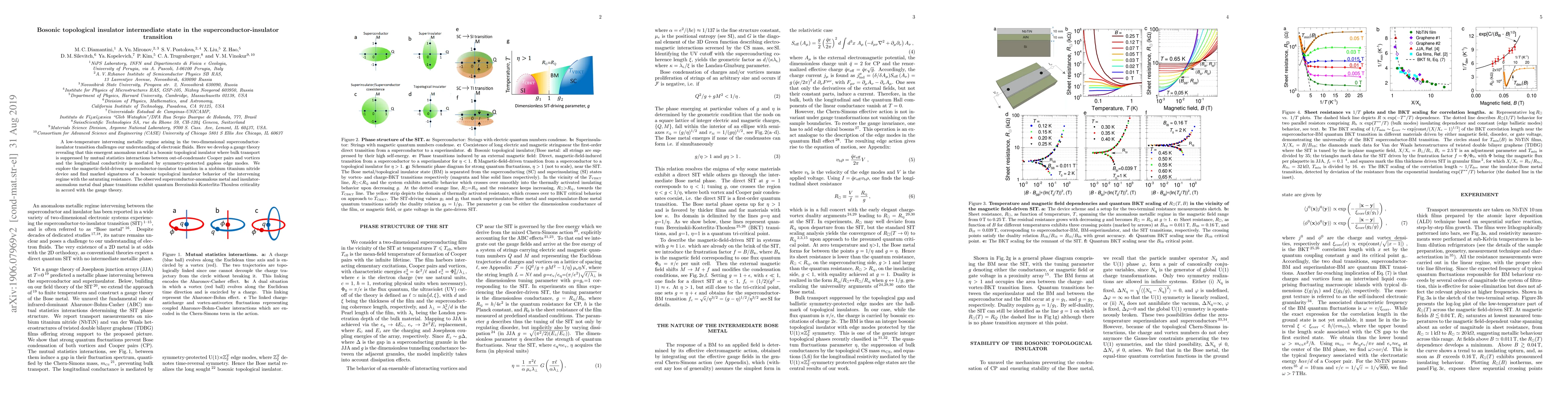 This paper identifies a low-temperature metallic regime in the superconductor-insulator transition as a bosonic topological insulator, where bulk transport is inhibited by interactions between Cooper pairs and vortices, and longitudinal conductivity is enabled by edge modes. Experimental evidence from a niobium titanium nitride device supports the theoretical prediction of dual phase transitions and quantum criticality.
